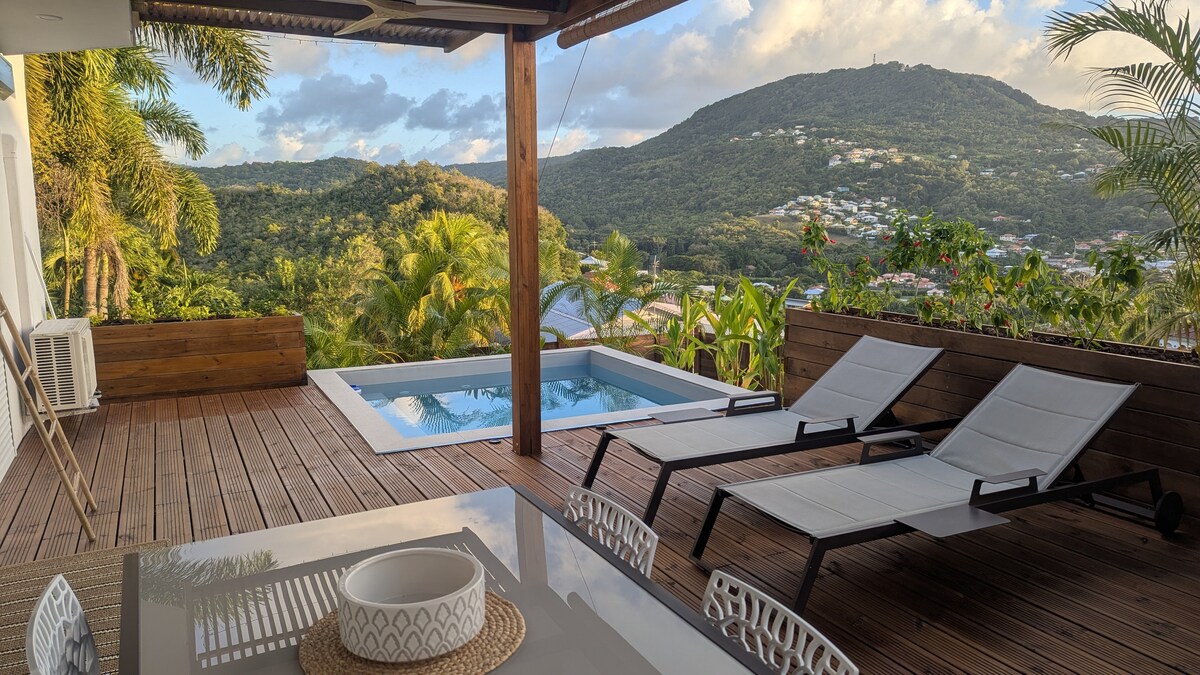 BIENVENUE dans le Nord Caraïbe de la Martinique, dans le village pittoresque du Morne Vert, situé au sein du site inscrit au patrimoine mondial de l'UNESCO, qui intègre les Pitons du Nord et la majestueuse Montagne Pelée pour leur biodiversité exceptionnelle ! Votre logement vous offre une vue imprenable sur ces merveilles naturelles ainsi qu'un accès facile aux plages avoisinantes et aux nombreuses randonnées. C'est un deux-pièces qui jouxte la maison de vos hôtes.