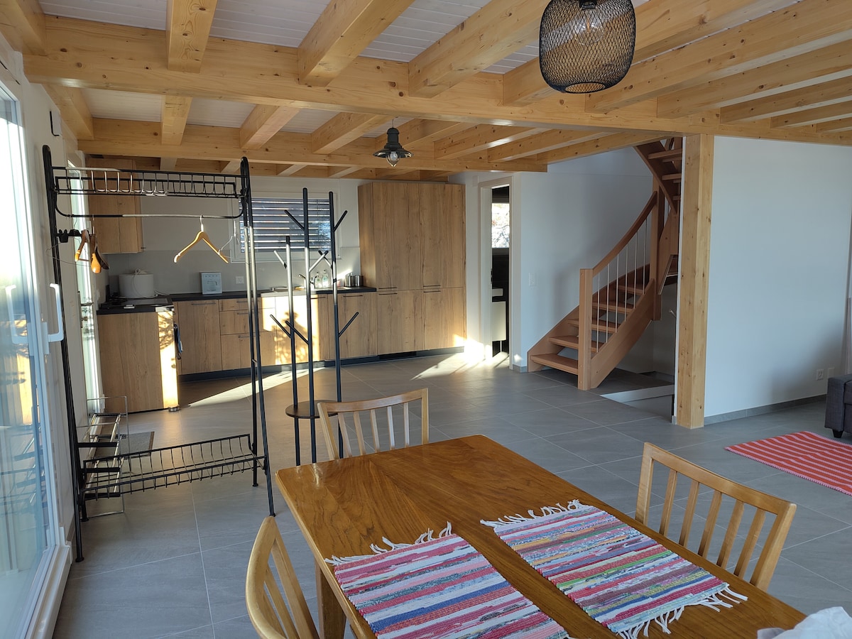 Luksuzni smeštaj koji se nalazi pored Lerija i 500m od jezera. Pogodno za porodice (kapacitet za 2 odrasle osobe i 1 decu). Ima sve što vam treba da provedete izuzetan vikend ili nedeljne praznike. Idealno se nalazi za šetnju Lavauxom. Potpuno opremljen sa kuhinjom, mašinom za pranje veša i privatnom terasom. Železnička stanica u blizini.