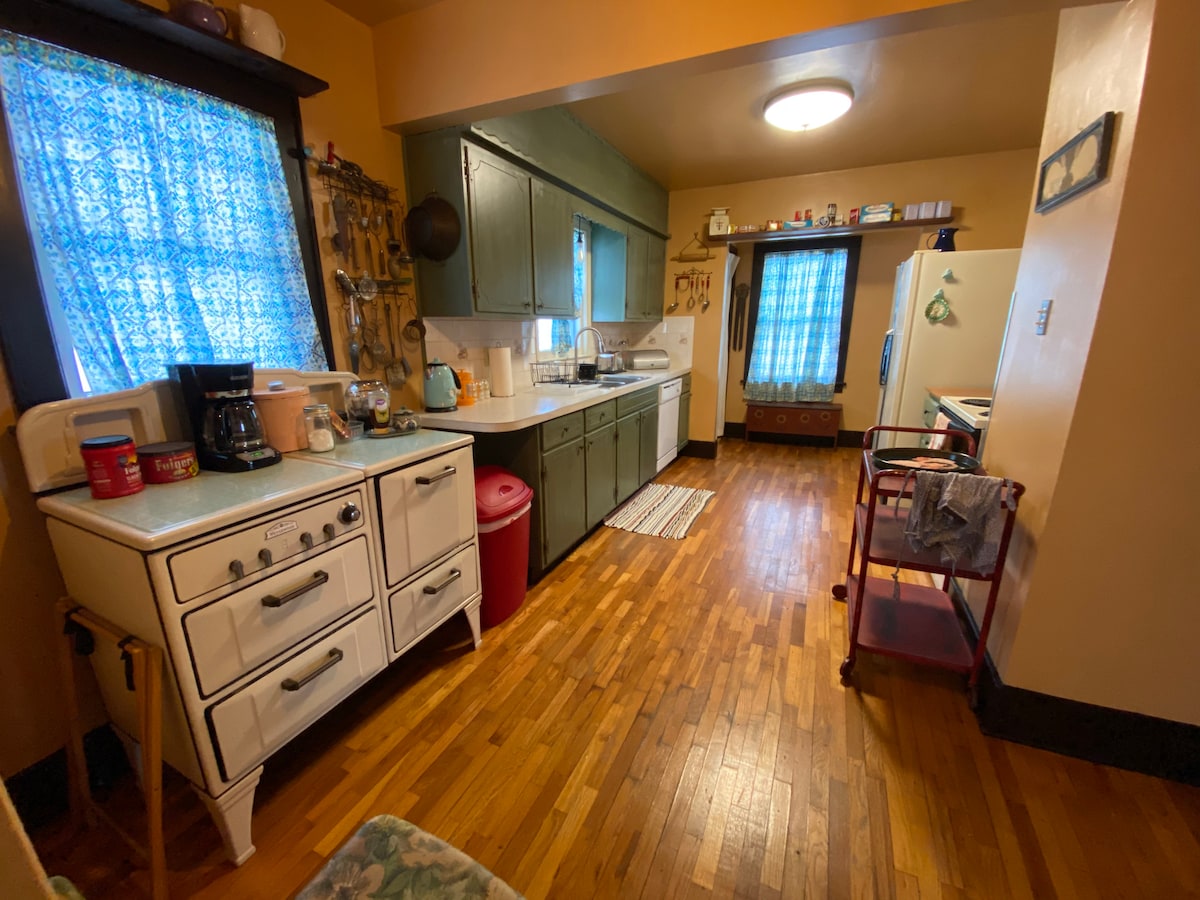 Savršen odmor koji je blizu! Uživajte u privatnosti u našem obnovljenom bungalovu iz 1933. godine na 18 hektara samo nekoliko minuta od I-70. Opustite se nakon putovanja ili okupite prijatelje na koncertu. Upijajte se u kadi i najbolje spavajte na plišanom dušeku. Kuvajte u opremljenoj kuhinji ili jedite u restoranima udaljenim pet minuta. Meander duž pokošenih staza i pustite decu da se igraju! Mi smo pogodni za kućne ljubimce i spremni smo za poslovanje sa gigabitnim internetom i kancelarijom.