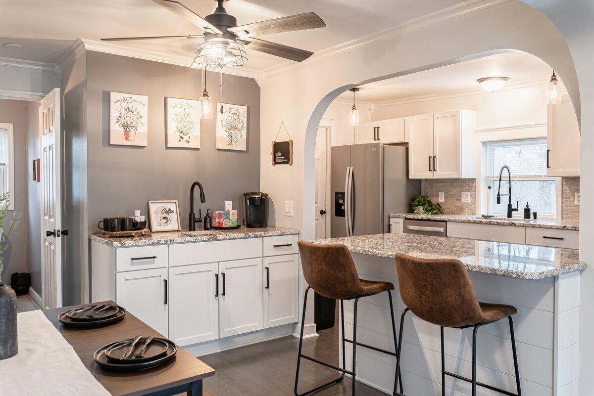 Belle on Broadway Bungalow is a charming retreat in the heart of Leavenworth, right next to Fort Leavenworth and minutes from historical downtown. Ovaj jednosobni smještaj takođe ima kauč na izvlačenje (najbolji za jednu odraslu osobu ili dvoje djece), potpuno opremljenu kuhinju i ograđeno dvorište koje prima kućne ljubimce. Uživajte u kafi na prednjem ili zadnjem trijemu, kao i u garaži i na ulici. Samo 15 minuta do Vestona, MO, to je savršen smještaj za istoriju, udobnost i šarm malog grada! Ovo je vaš dom daleko od doma.