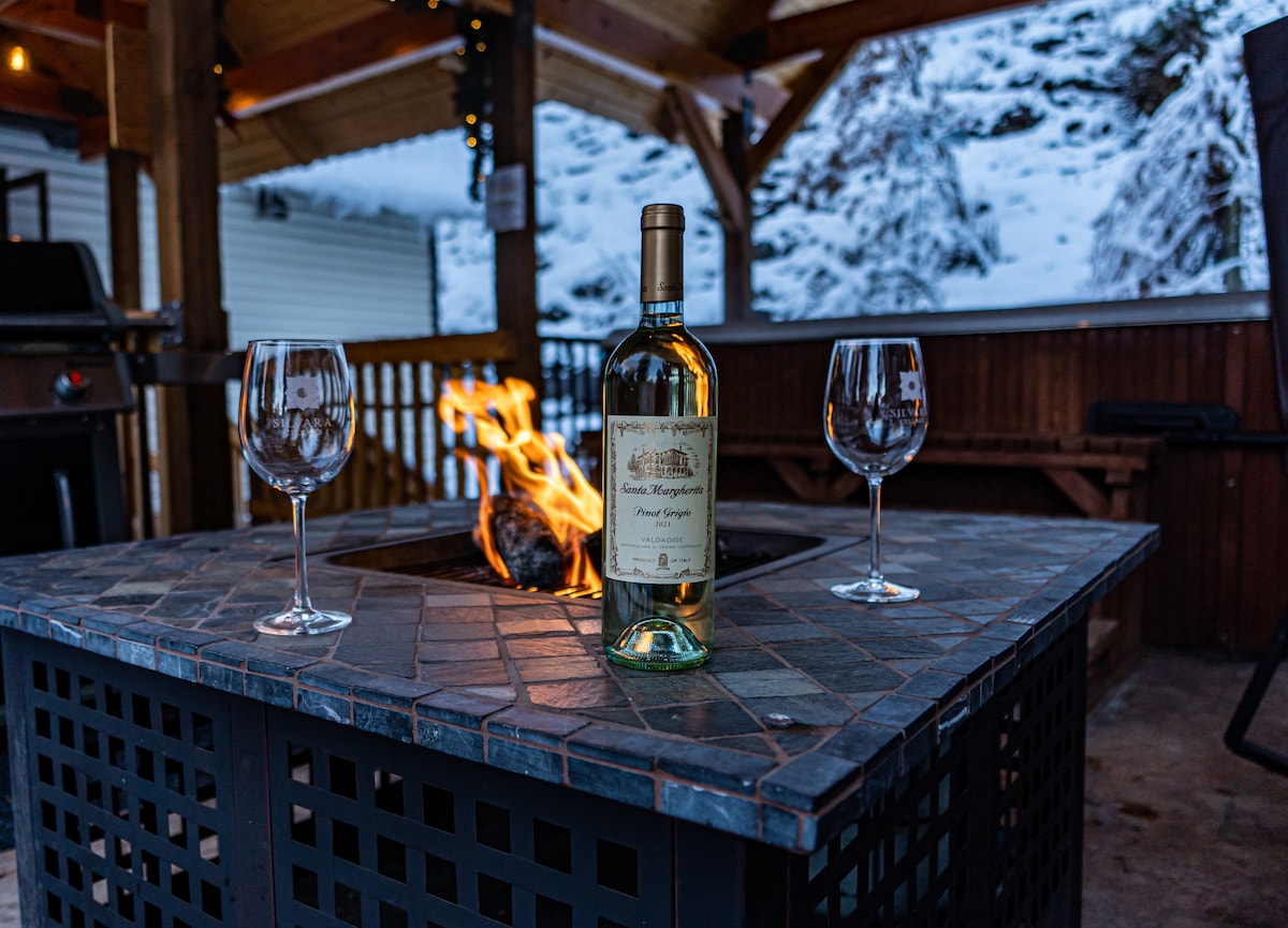 Nalazi se 2,4 km od Bavarskog sela. Šarmantna planinska kuća smeštena na padini brda koja odiše ponosom i veštinom vlasnika. Zapanjujuća i potpuno opremljena kuhinja sa ručno rezanim kamenom i drvenarijom. Soba za zabavu sa bilijarskim stolom, stonom fudbalskom igrom i igrom shuffleboard. Vanjski prostori su jednako nevjerovatni kao i oni unutra. Privatna hidromasažna kada sa pokrivkom nudi mnogo mlaznica i vulkan za stopala u kojima možete da uživate nakon celodnevnog pešačenja, skijanja ili raftinga na reci, a sve to na samo nekoliko minuta udaljenosti. BEZ KUĆNIH LJUBIMACA/BEZ IZUZETAKA. STR 000220.