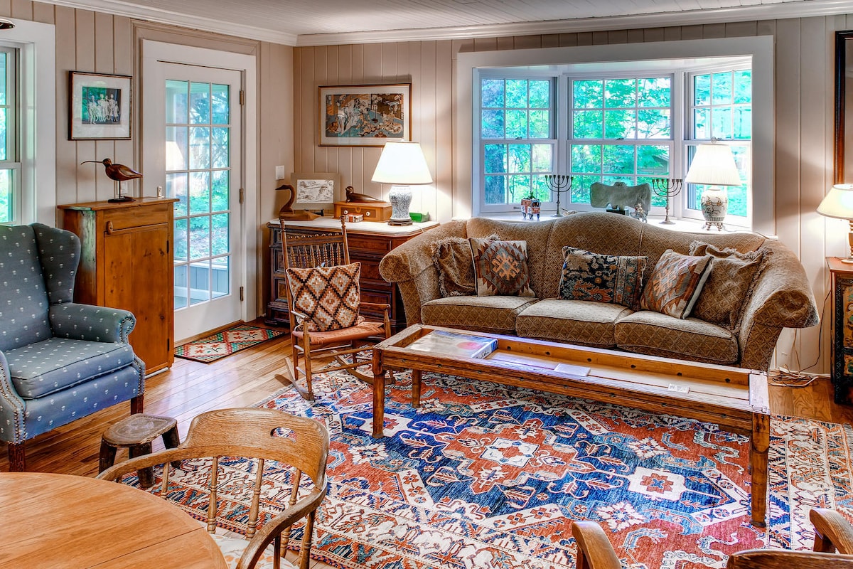 Luksuzna, dobro opremljena seoska kuća – prelep pogled na izlazak sunca, nalazi se između Vudstoka (Vermont) i Hanovera (Nju Hempšir). Inspirativna poslastica za muzičare je potpuno obnovljen Steinway iz 1929. godine, kompletna kuhinja, prilagođeni ormarići, kamin na gas, energetski efikasna toplotna pumpa, mašina za pranje veša, mašina za sušenje veša. VRLO udoban bračni krevet. Romantični bijeg u šumu, opustite se, radite u miru, istražite ljepotu i istoriju ovog područja. Pješačenje, biciklizam, ribolov, vožnja balonom na vrući vazduh i kupovina su u blizini. Dugoročno iznajmljivanje (90 dana) ili iznajmljivanje tokom vikenda
