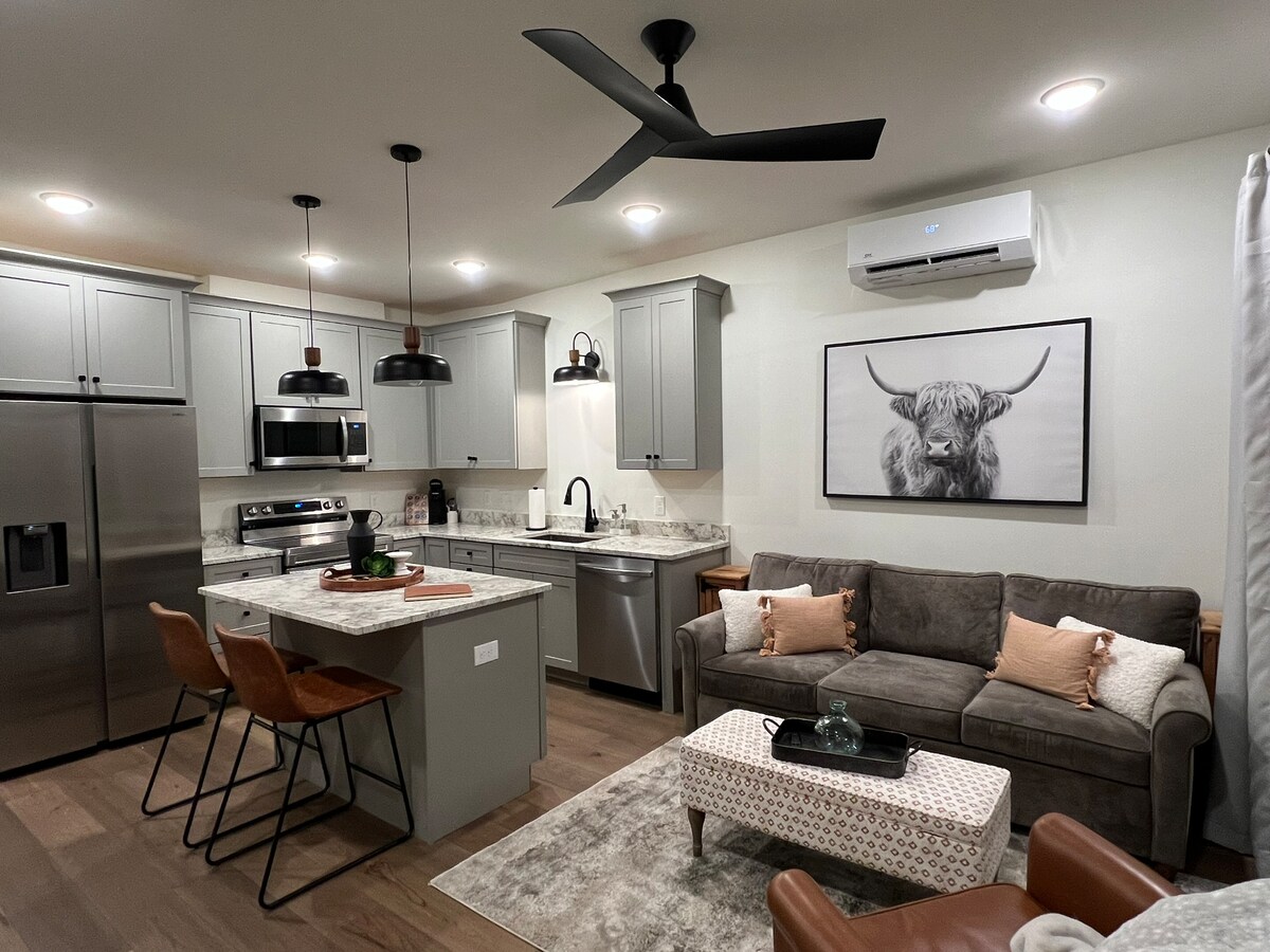 Dobro došli u svoj novouređeni jednosobni dom! Ovo elegantno utočište ima prostrani bračni krevet i udoban kauč na izvlačenje sa nadmadracem za dodatnu udobnost. Blistava kuhinja se može pohvaliti potpuno novim uređajima, savršenim za kulinarske avanture. Izađite na privatno zadnje dvorište, zajedno sa samostalnim šporetom za tople i opuštene večeri. Osim toga, uživajte u udobnosti boravka u pješačkoj udaljenosti do živahnog centra grada. Vaš idealan dom vas čeka!