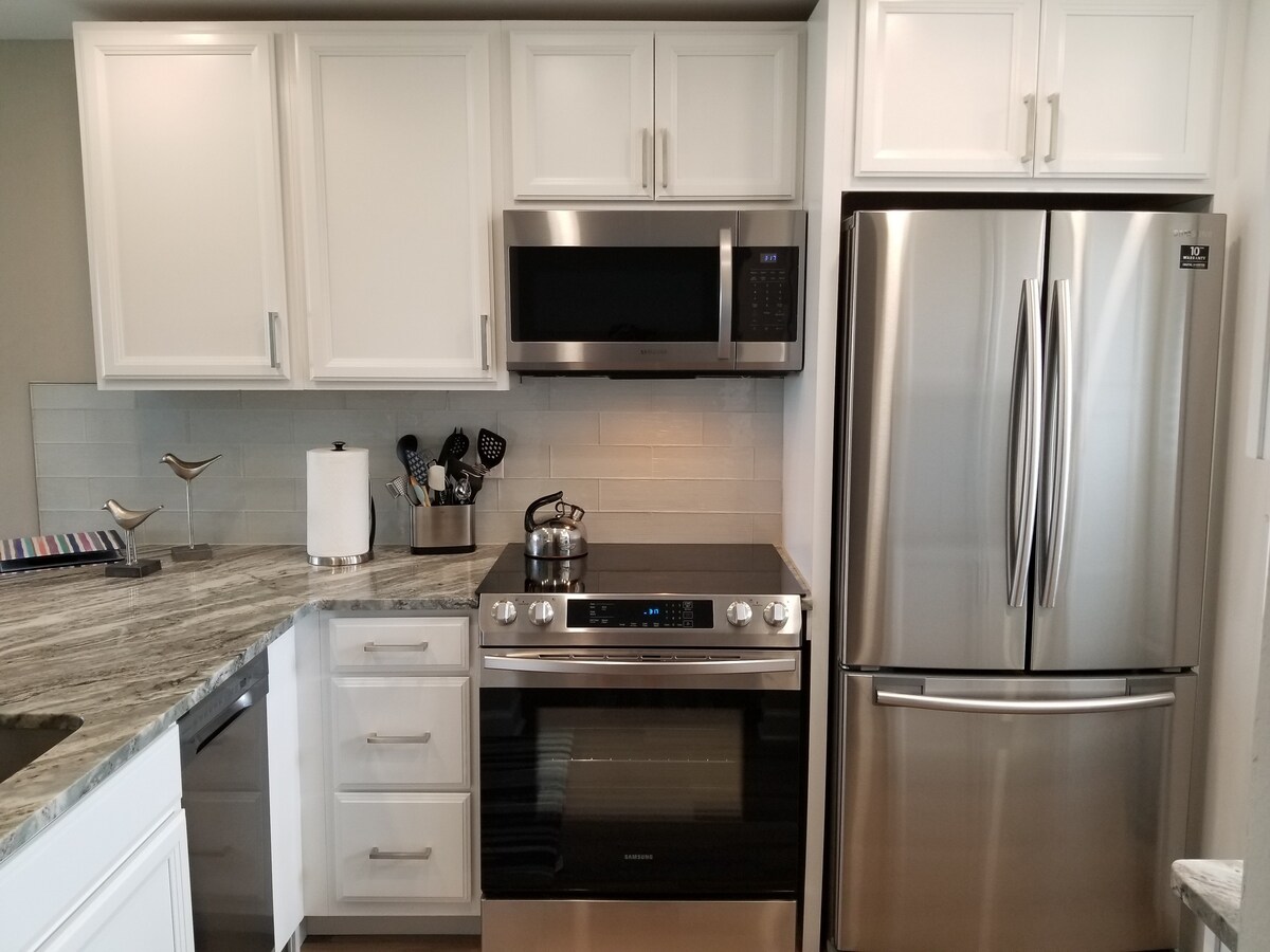 Elegantan kondominijum na 19. spratu sa zadivljujućim pogledom na rijeku Caloosahatchee. Za 4 osobe s jednom spavaćom sobom, 1,5 kupatilom, sklopivim bračnim krevetom i udobnom sofom. Uživajte u bazenu, toplom spa centru, teretani, bioskopu, stonom tenisu, bilijaru i opremi za plažu. Kafić u predvorju sa opcionalnom uslugom u sobi. Bezbjedno, moderno i samo 3 minuta hoda do zabave i objedovanja u centru grada!