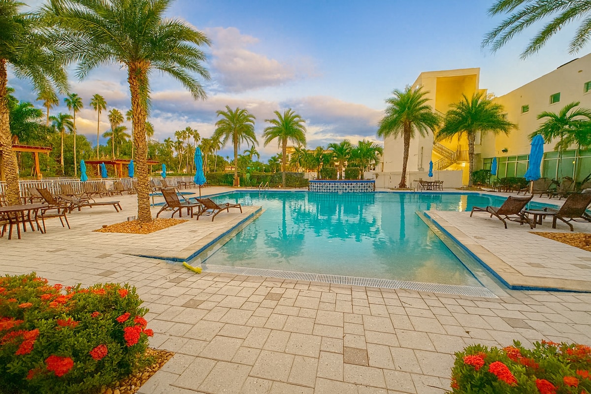 Dobro došli u svoj smještaj kategorije Luxe Living! Doživite savršenu mješavinu udobnosti i sofisticiranosti u ovom apartmanu Executive King s pogledom na grad, koji se nalazi u srcu Fort Majersa. Ovaj moderni kondominijum sa 1 spavaćom sobom ima plišani bračni krevet i kauč na razvlačenje, idealan za parove, profesionalce ili male porodice. Uživajte u pogledu na grad, potpuno opremljenoj kuhinji i pristupu vrhunskim sadržajima samo nekoliko koraka od najboljih restorana, prodavnica i zabave u Fort Majersu.
