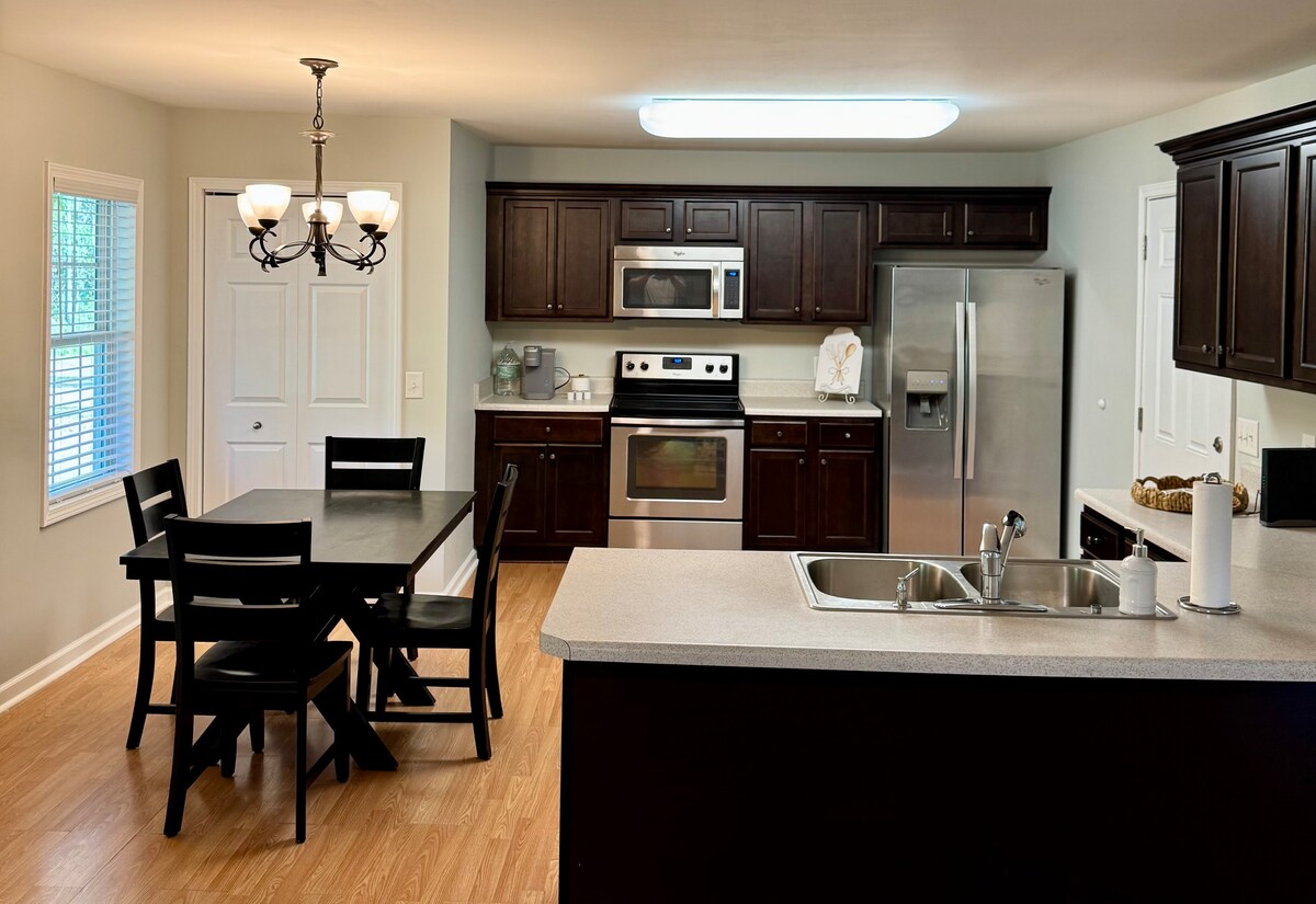 Bikovsko utočište je sjajan prostor sa 2 bračna kreveta (širine 150–179 cm) i 2 kreveta za jednu osobu, idealan za putnike ili kratke odmore. Nalazi se u centru grada u mirnoj četvrti u blizini Ft. Brag, Fajetvil i Sanford. Odlično je za ponovno druženje sa porodicom i prijateljima. Dnevni boravak otvorenog tipa obuhvata potpuno opremljenu kuhinju, šank za doručak, trpezariju i 3 spavaće sobe i 2 kupatila. Možete da se opustite pored ognjišta Napomena: Vlasnici koriste garažu isključivo za ličnu upotrebu; gostima nije dostupna.
