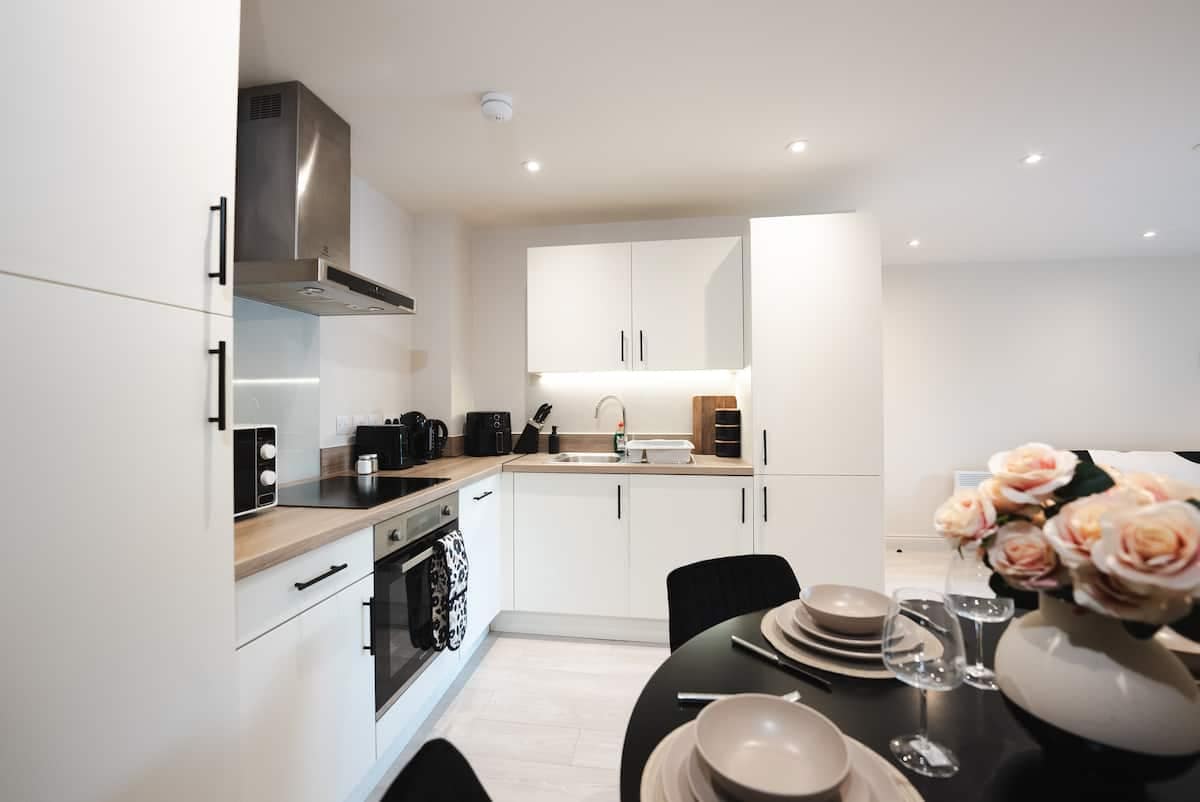 Ovaj zaista elegantan smještaj je savršen za posao, zadovoljstvo i posjetu porodici. Može se pohvaliti sa 3 velike dvokrevetne spavaće sobe, 2 moderna kupatila i dnevnim boravkom u kuhinji otvorenog tipa. Objekat je udaljen nekoliko minuta od centra Lidsa. Nakon što je upravo kompletan projekat renoviranja završen sa potpuno opremljenom kuhinjom sa toplim, udobnim, udobnim spavaćim sobama, Smart TV-om u svim sobama, toaletnim stolovima i Sky TV-om. Na ulici, besplatan parking sa ogromnim parkom preko puta, teniskim terenima, prostorom za igru i mnoštvom idiličnih šetnji.