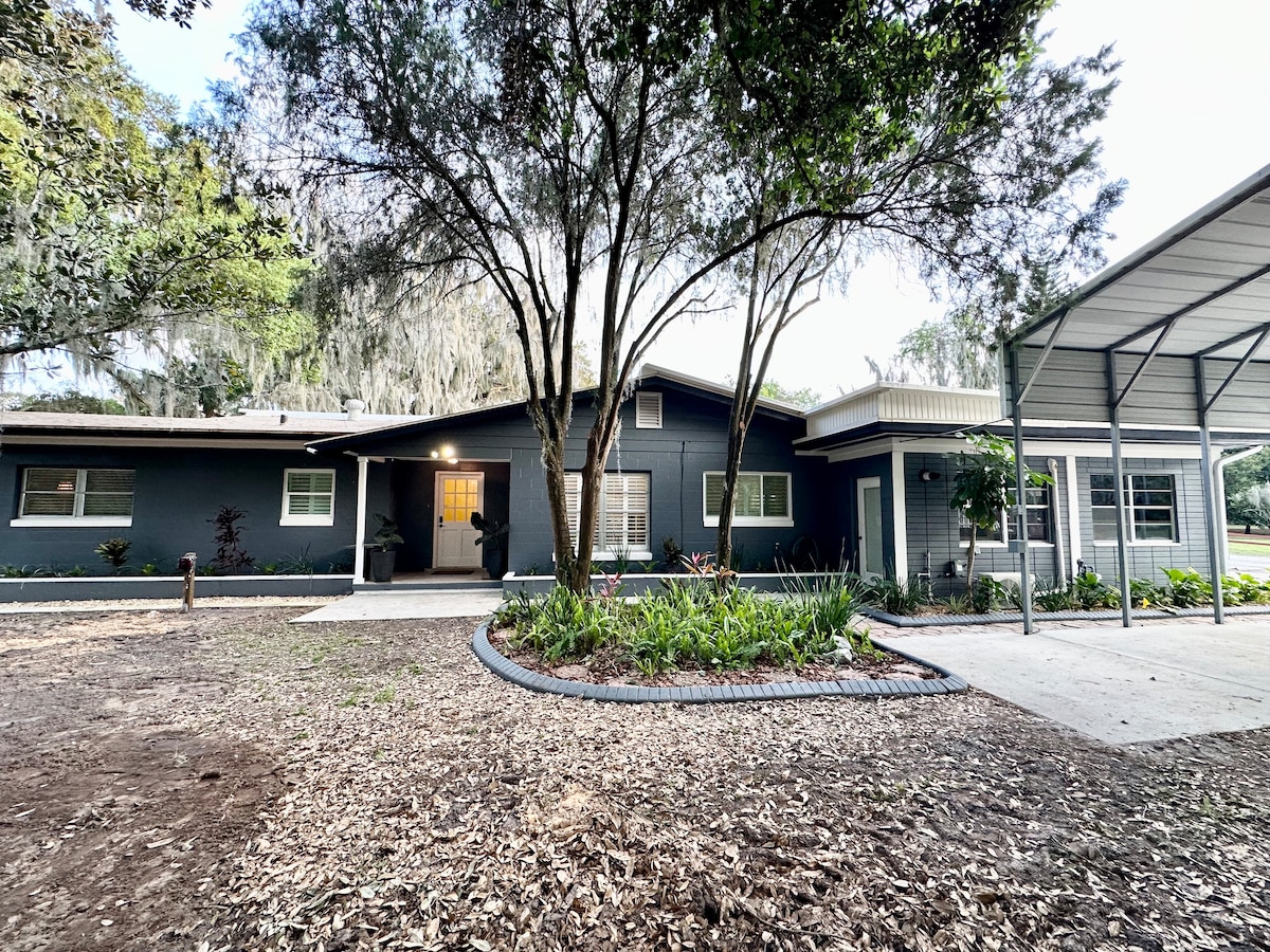Pobjegnite u ovu udobnu malu seosku kuću s velikim bračnim krevetom, kupatilom, čajnom kuhinjom i udobnošću za kućne ljubimce. Opustite se pod zvjezdanim nebom, uživajte u pogledu na farmu i berite svježe povrće ili voće iz vrta i sa drveća kada je sezona. Samo 15 minuta do Vilidža, 20 minuta do Vajldvuda, 35 minuta do Okale, 1 sat do Orlanda, nekoliko minuta od Braunvuda i žive muzike i brz pristup autoputu i I-75. Savršeno za romantičan, elegantan odmor u blizini izvora, staza i lokalnih atrakcija.