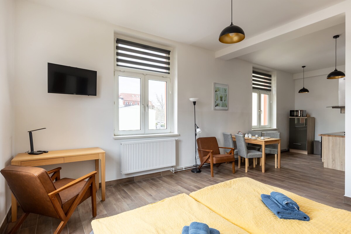 ovaj novoizgrađeni stan za odmor ima 2 sobe (1 spavaća soba sa bračnim krevetom i dnevni boravak sa studio kaučem (još 2 mjesta za spavanje). Ima unutrašnje dvorište, grijani pod i potpuno je namješten. Imate i sopstvenu saunu. kupovina i javni prevoz dostupni su za nekoliko minuta hoda. Parking je besplatan tačno ispred stana. Potrebno je samo oko 15 minuta vožnje do centra grada. Siguran sam da ćete uživati u boravku u Lajpcigu. Nadam se da ću vam uskoro poželjeti dobrodošlicu.