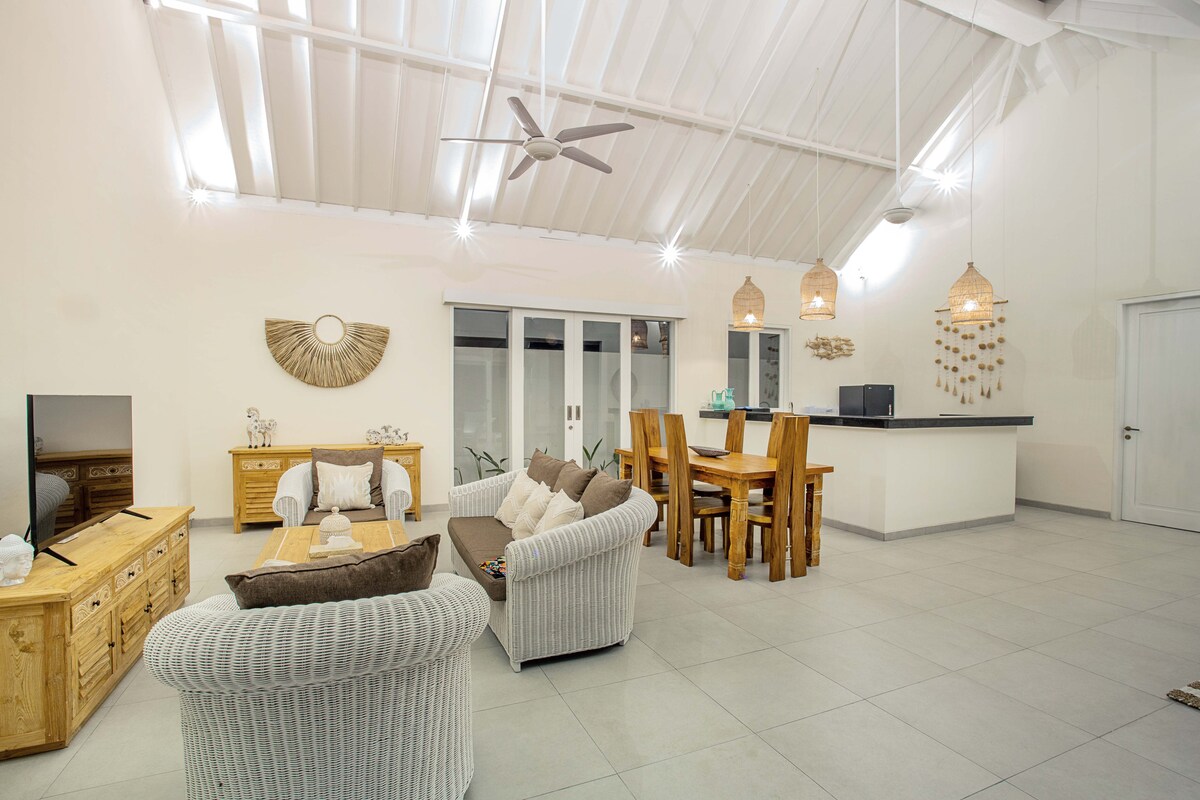 Vila KORI Private je renovirana u februaru 2026. godine. Nalazi se na 1 min hoda od plaže, glavnog puta i kratkog veslanja do surferskog odmora na igralištima. Vila KORI Private ima 4 spavaće sobe za 8 odraslih i do 4 dece, privatni bazen, dnevni boravak otvorenog tipa i potpuno opremljenu kuhinju, klimatizovane spavaće sobe, dnevno posluživanje i lokalno osoblje sa Balija koje će vam pomoći u svemu što vam je potrebno. Aparat za filtriranu vodu je odlična opcija za naše goste.