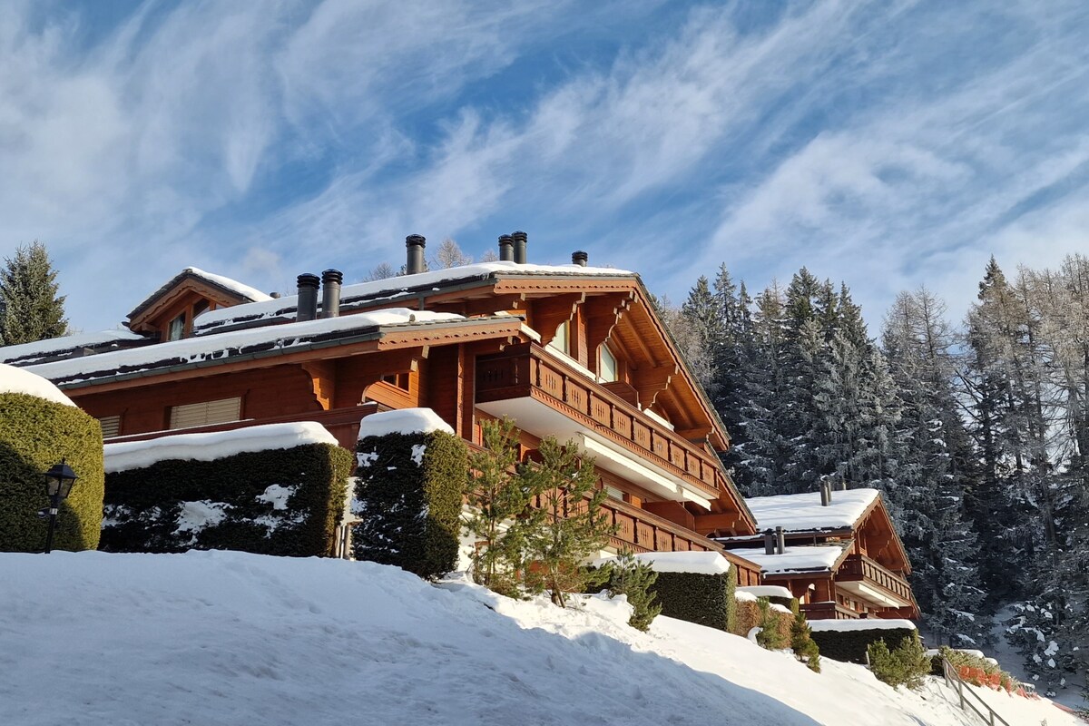 Mala elegantna čahura s pogledom, takođe pogodna za porodice. Nedaleko od golfa i javnog prevoza (besplatno za odmaralište). Dečiji ski lift se nalazi u neposrednoj blizini stana. Prelijepi bisse i Lac des Miriouges u blizini, pješke od stana. Mirno i osvježavajuće mjesto, opremljeno svim sadržajima. Garaža (ograničena visina) opremljena punjačem od 11KW za električni automobil (terminal se plaća dodatnih 20 CHF dnevno).