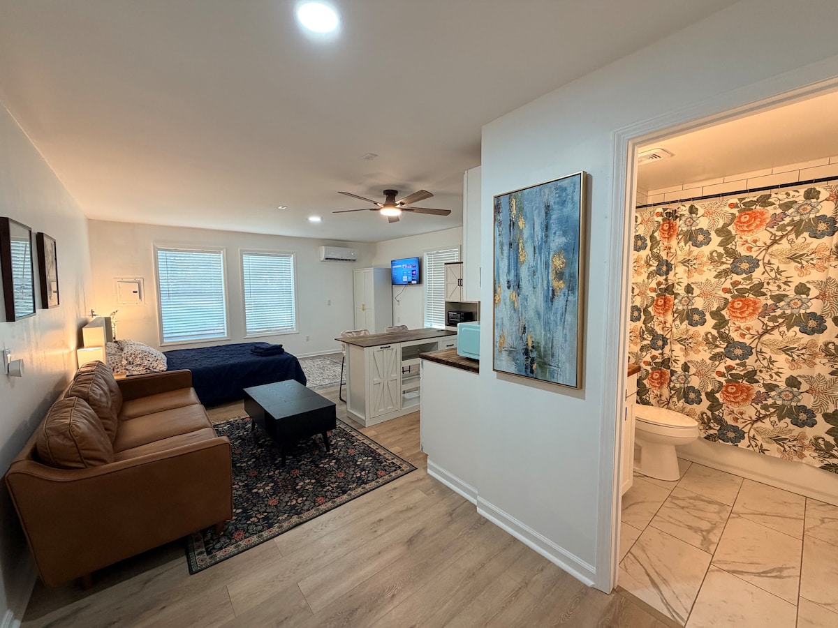 Nedavno ažurirani apartman za goste u srcu Midtauna! Otvoreni koncept apartmana sa jednim bračnim krevetom i kaučem za spavanje veličine dva odvojena kreveta. Moderno kupatilo i kuhinja sa svime što vam je potrebno za kuvanje. Lagana šetnja do odličnih restorana, barova i parka Lafajet. 5-8 minuta vožnje do aerodroma, stadiona Doak Campbell, centra Donalda Takra Civic Centra, Capital Bldg., Memorijalne bolnice Talahasi i 3 prodavnice. Mirno okruženje sa parkingom van ulice. Gostinjska kuća je povezana sa glavnim domom vlasnika, sa zasebnim ulazom.