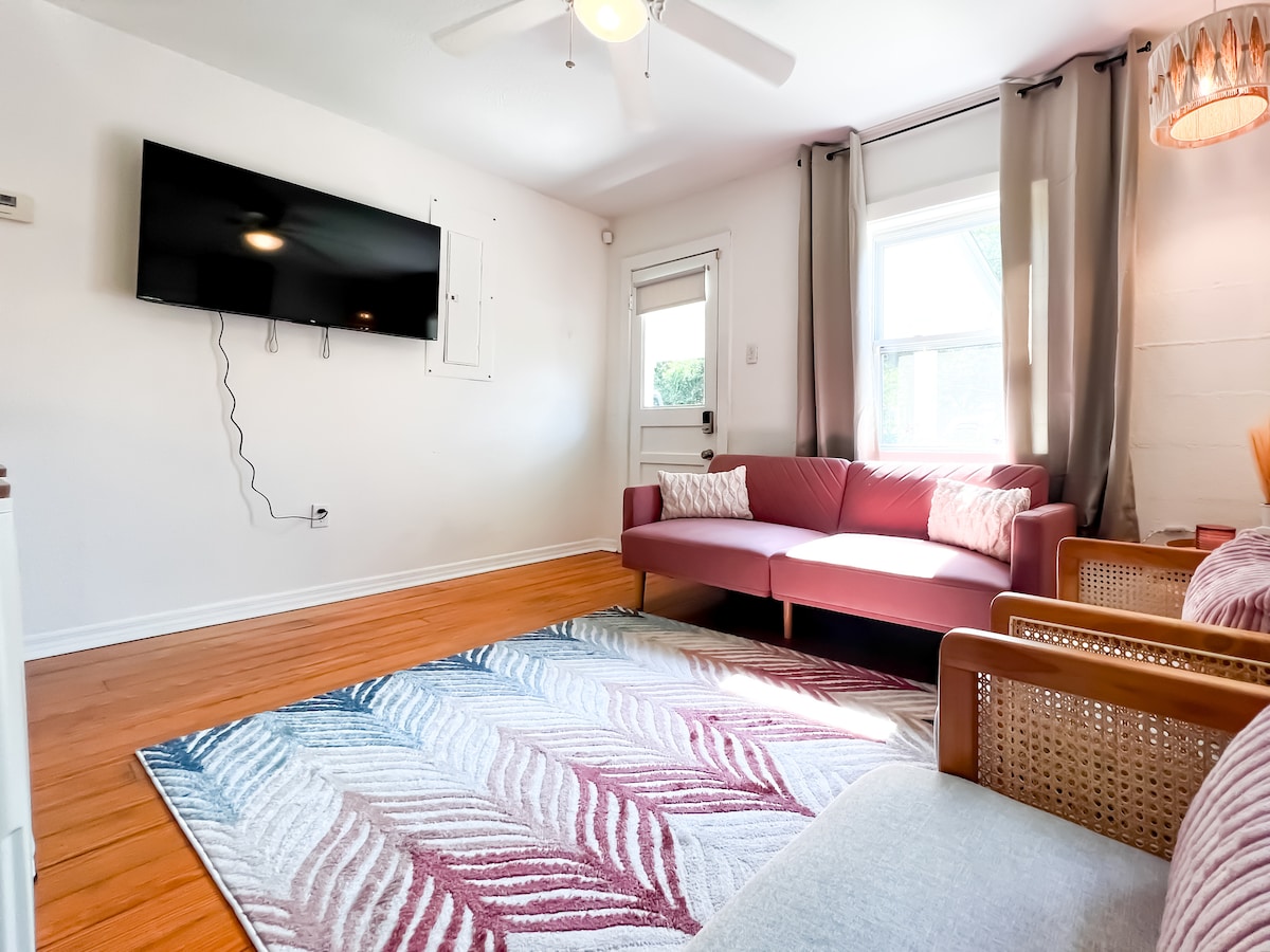 Pobjegnite u ovu predivno uređenu kuću smještenu na mirnoj i prikladnoj lokaciji, samo 5-15 minuta od gradske zabave, lokalnih prodavnica i restorana, kao i gradskog fakulteta i univerziteta. Ovaj 1bd/1ba ima sve, uključujući besprekornu samostalnu prijavu, prostranu dnevnu sobu sa pametnim televizorom od 55 inča, trpezariju, potpuno opremljenu kuhinju, vešernicu i spavaću sobu koja izlazi na terasu (u izgradnji). Savršen odmor za parove, porodice, ljubitelje atleta i avanturiste.