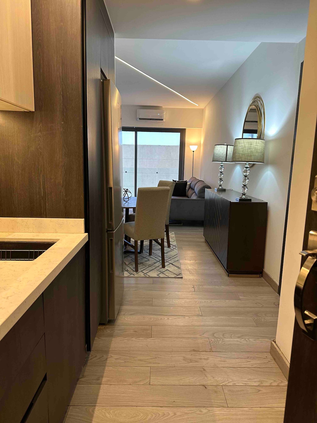 Dobro došli u novoizgrađeni stan u srcu Bulevara Kampestre, gde ćete doživeti neverovatan pogled sa 12. sprata. Deo stambene zgrade koja nudi ekskluzivne pogodnosti kao što su privatni podzemni parking, lift i danonoćni bezbednosni pristup kako biste bili spokojni. Bez obzira na to da li ste ovde zbog poslovnog putovanja ili na lični odmor u Leonu, potpuno opremljen stan zadovoljava sve vaše potrebe. Otkrijte svoj savršeni dom daleko od doma.