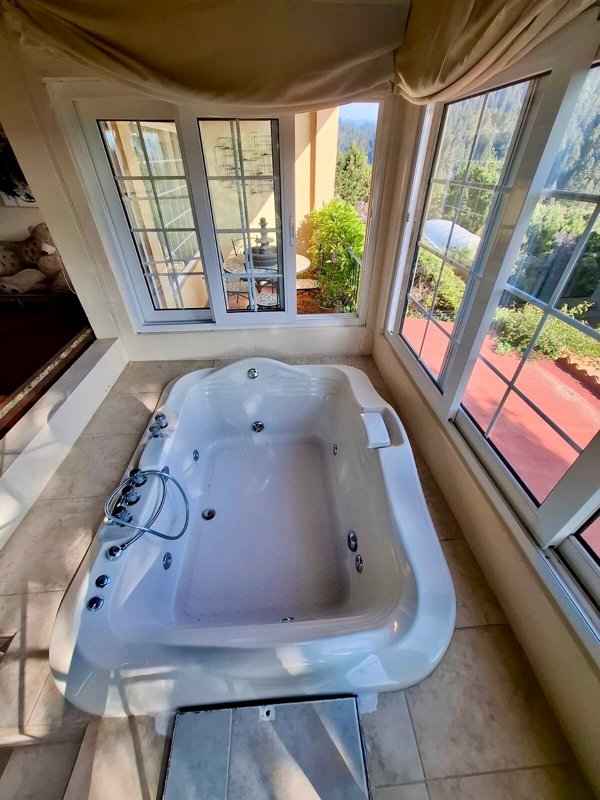 Panoramska planinska kuća s kadom s pogledom na šumu