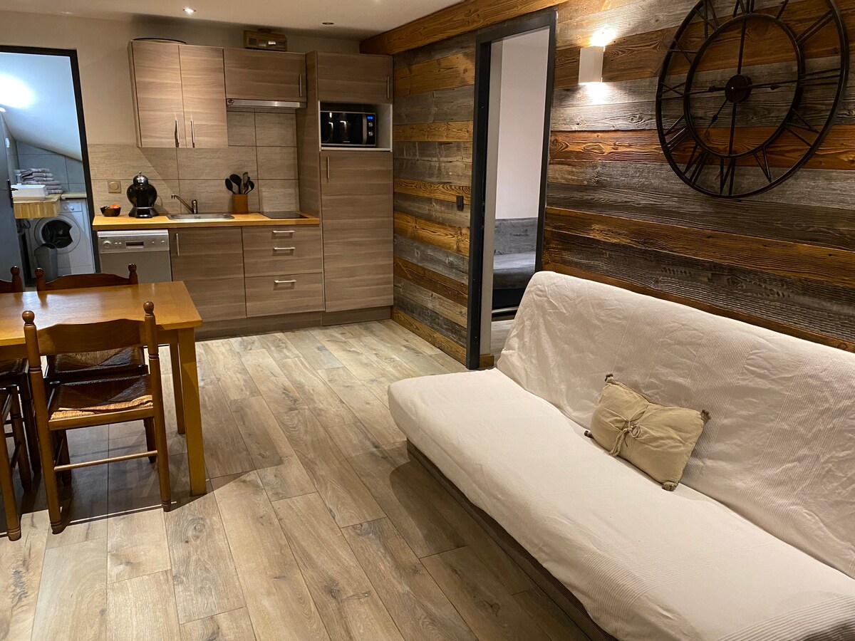 Mala planinska kuća idealna za porodicu od 2 odrasle osobe i 2 dece u podnožju planina 1,8 km od skijaških staza odmarališta Morilon i domena velikog masiva (flaine, samoens, carroz). Možete uživati u skijaškim stazama, skijaškom trčanju, skijanju na skijaškoj stazi, krpljama za snijeg itd. Čeka vas lep pogled na planine. Možemo da vas vodimo u otkrivanju doline. Možemo da vam obezbedimo posteljinu i peškire za 10 evra po osobi.