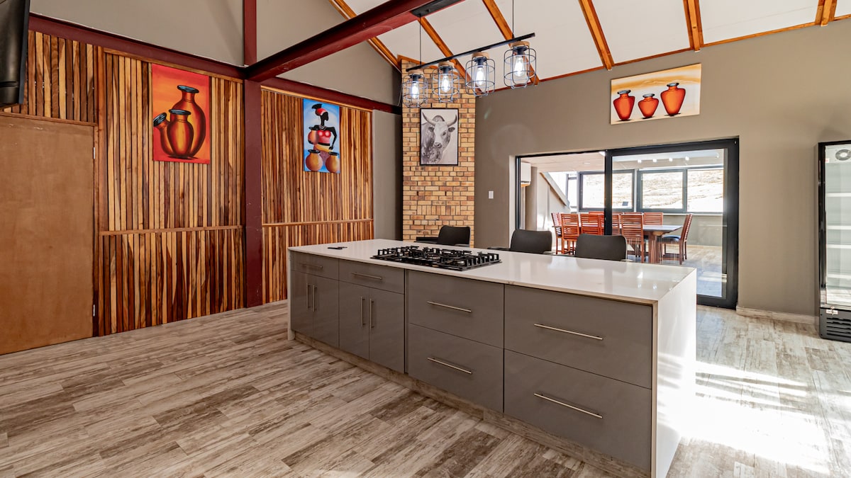 Experience the perfect blend of modern luxury and farmhouse charm in the heart of Maseru. This sanctuary is designed for rest and inspiration, featuring breathtaking panoramic mountain views that set the stage for an unforgettable stay. Whether you're here to work or unwind, the peaceful atmosphere and sleek design provide the ultimate retreat.