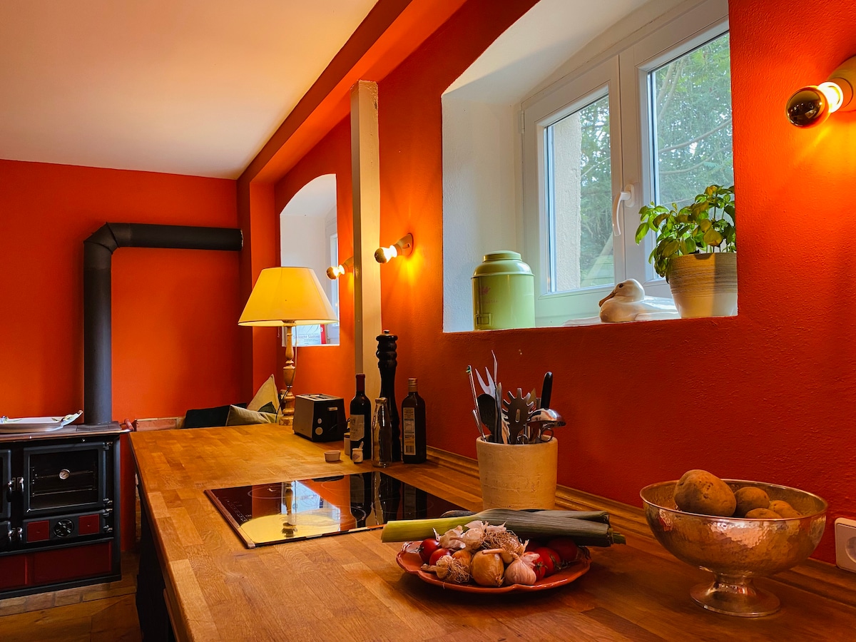 Udobna kuća s velikom baštom i saunom (g. fee) nalazi se na ivici šume u parku prirode Märkische Schweiz, samo 50 km od centra Berlina. S ljubavlju namještena kuća ima prekrasan pogled na šumu, veliku kuhinju-dnevni boravak, kamin i podno grijanje. U selu se nalaze 3 jezera sa prirodnim bazenima i spoljnim bazenom. Planinarenje u parku prirode, biciklizam, čitanje u visećoj ležaljci, roštiljanje, opuštanje, zajedničko kuvanje, sedenje pored logorske vatre ili rad u miru - sve je to moguće ovde.
