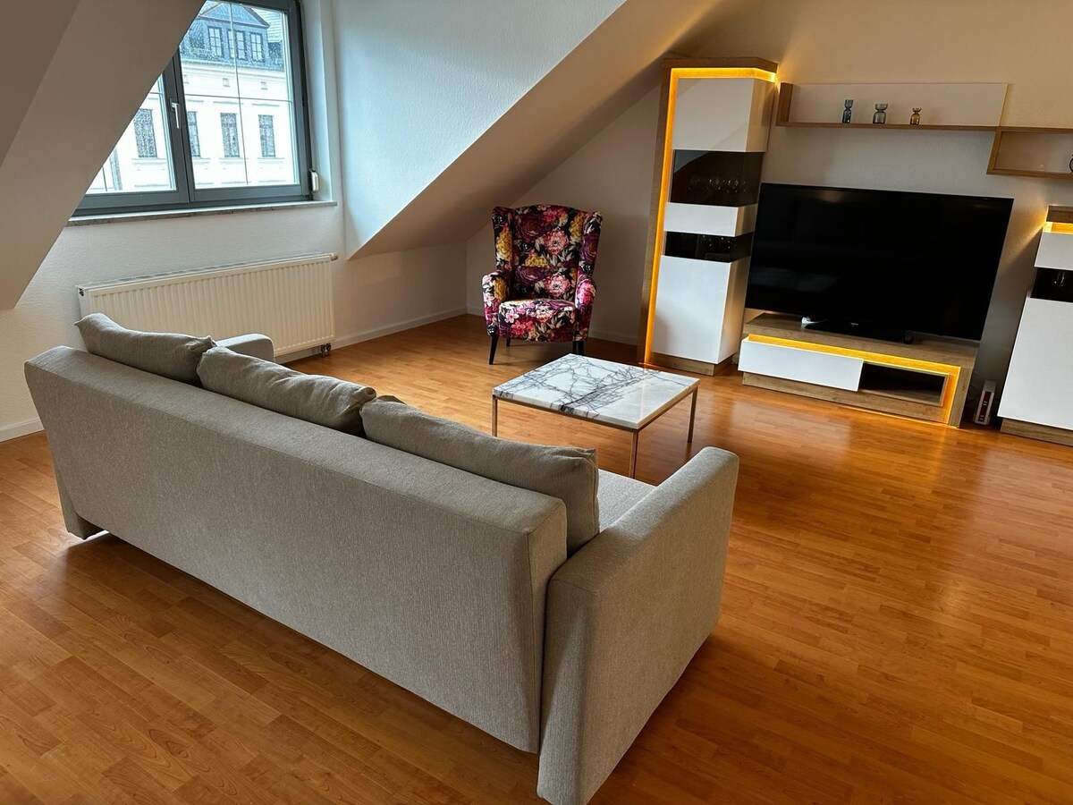 Uživajte u modernoj oazi u srcu Plauena! Ovaj stan je mjesto gdje ćete se odmah osjećati kao kod kuće. Svaka soba je dizajnirana sa puno ljubavi prema detaljima. Uživajte u omiljenim emisijama na TV-u ravnog ekrana. Potpuno opremljena kuhinja čeka da otkrijete svoje vještine kuvanja. Rezervišite naš šarmantni stan još danas. Radujemo se što ćemo vas dočekati.