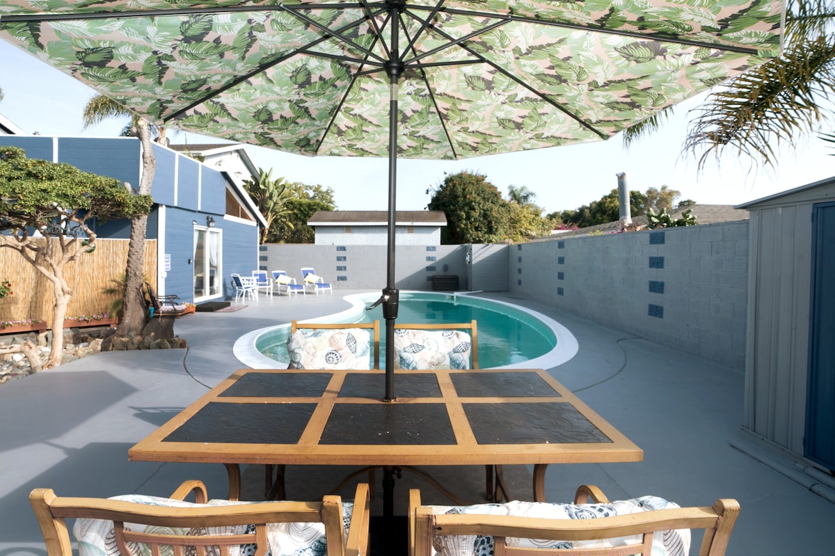 Dobro došli u najslađu kuću na plaži, mirnom utočištu smeštenom u srcu Karlsbada, savršenom za porodice i spokojne grupe koje traže opuštajući odmor. Ovaj mini kompleks nudi divno utočište u kojem možete da se opustite i zajedno kreirate dragocene uspomene. - Više od 2000 stopa kvadratnih - Potpuno preuređen - Satovi na plaži -Teretana/ Pelaton - velika igraonica -X propusnica ZA igre NA kutiji -Lego soba -Tesla punjač -Solli spa centar - kuhinja -King krevet - posvećeni radni prostor/ štampač - terasa na krovu