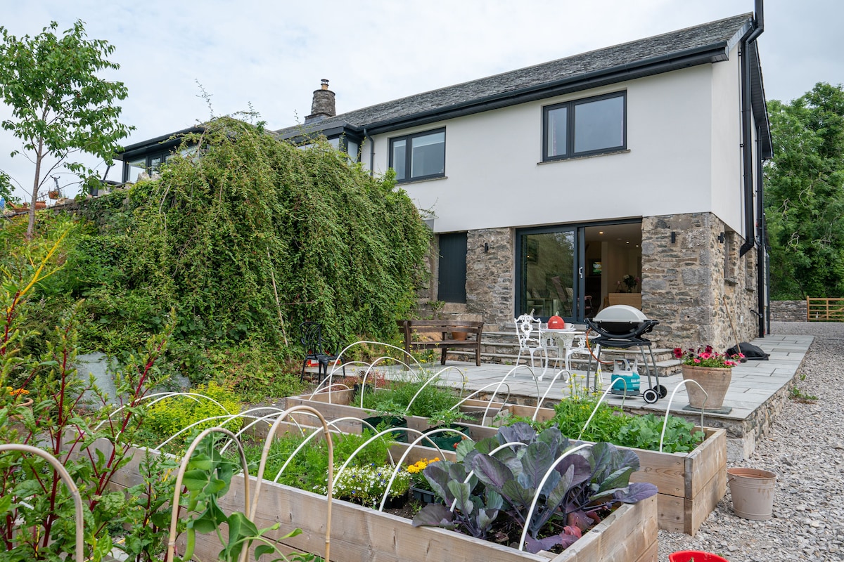 Forget your worries in this spacious and serene place. Simply relax and enjoy the views from a private garden or choose to explore your local area, to The Lake District and beyond. Behind the hamlet, the magical woods of Whitbarrow Scar invite you into a diverse walking experience. From waterfalls to quarries to limestone pavements and expansive views at the top, there's plenty to explore right from your doorstep. Minimum two night stay. EV charger (extra cost). Access via stone road.