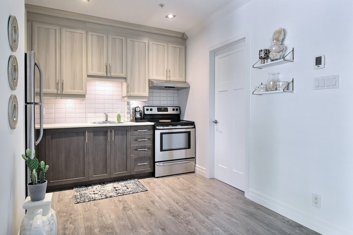 Dobro došli u udoban prostor! Novi, udoban i prijatan stan u srcu centra Kvebeka. Dobro opremljen i ukusno uređen u toplom stilu, naš stan ima sve što vam je potrebno za opuštajući boravak vredan hotela. Udoban prostor je: - Izuzetna lokacija u gradu u blizini svih nezaobilaznih znamenitosti - Unutrašnji parking - Terasa sa zajedničkim roštiljem - Teretana - najbrži internet I naravno brižni domaćini!:) CITQ: 311335