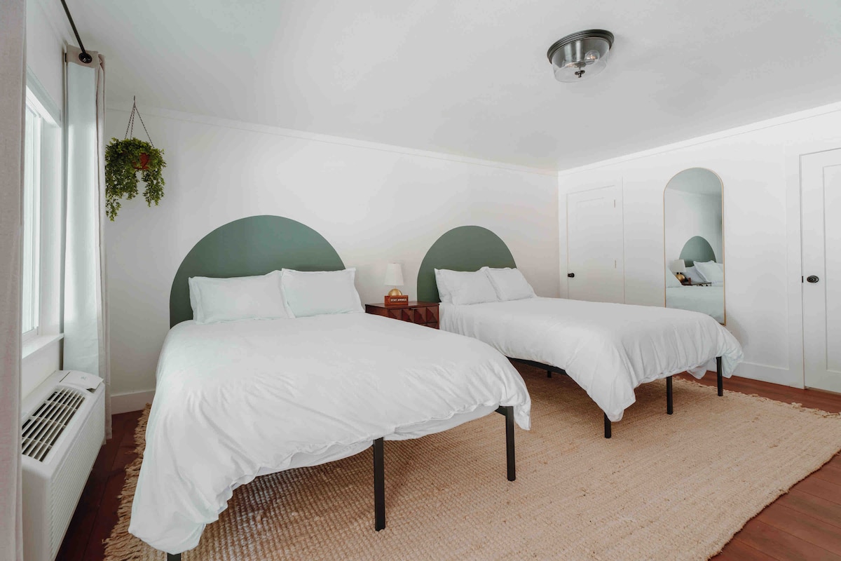 Beautifully updated and thoughtfully designed, this suite offers a cozy retreat with a king bed, a queen, bed, French doors that can close in-between to separate them and a private bathroom with a clawfoot bathtub. Guests can also enjoy a fresh cup of coffee from the in-room Keurig. No televisions have been put into our vintage rooms but, as a nod to modernity, free Wi-Fi access is available throughout the property. You won’t want to leave this charming, one-of-a-kind place.