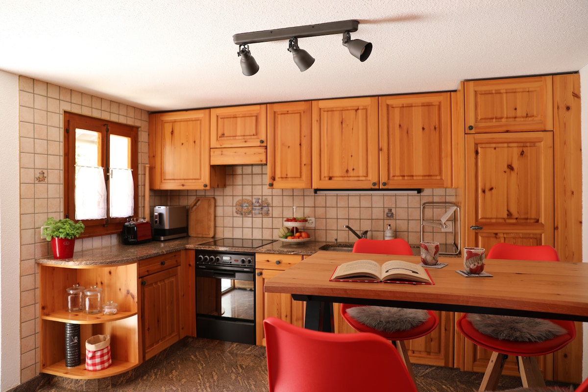 Promijenite ambijent i dođite i otkrijte naše prelijepe planine. Na donjem spratu planinske kuće nudimo veoma lijep stan. Uključuje spavaću sobu sa bračnim krevetom i dodatnim krevetom, kupatilo sa velikim tušem, malu i dobro opremljenu kuhinju i dnevni boravak sa TV-om. U prizemlju se nalazi namještena terasa sa pogledom na Alpe koji oduzima dah, koja se nalazi na jugu, na ivici šume, veoma tiha.