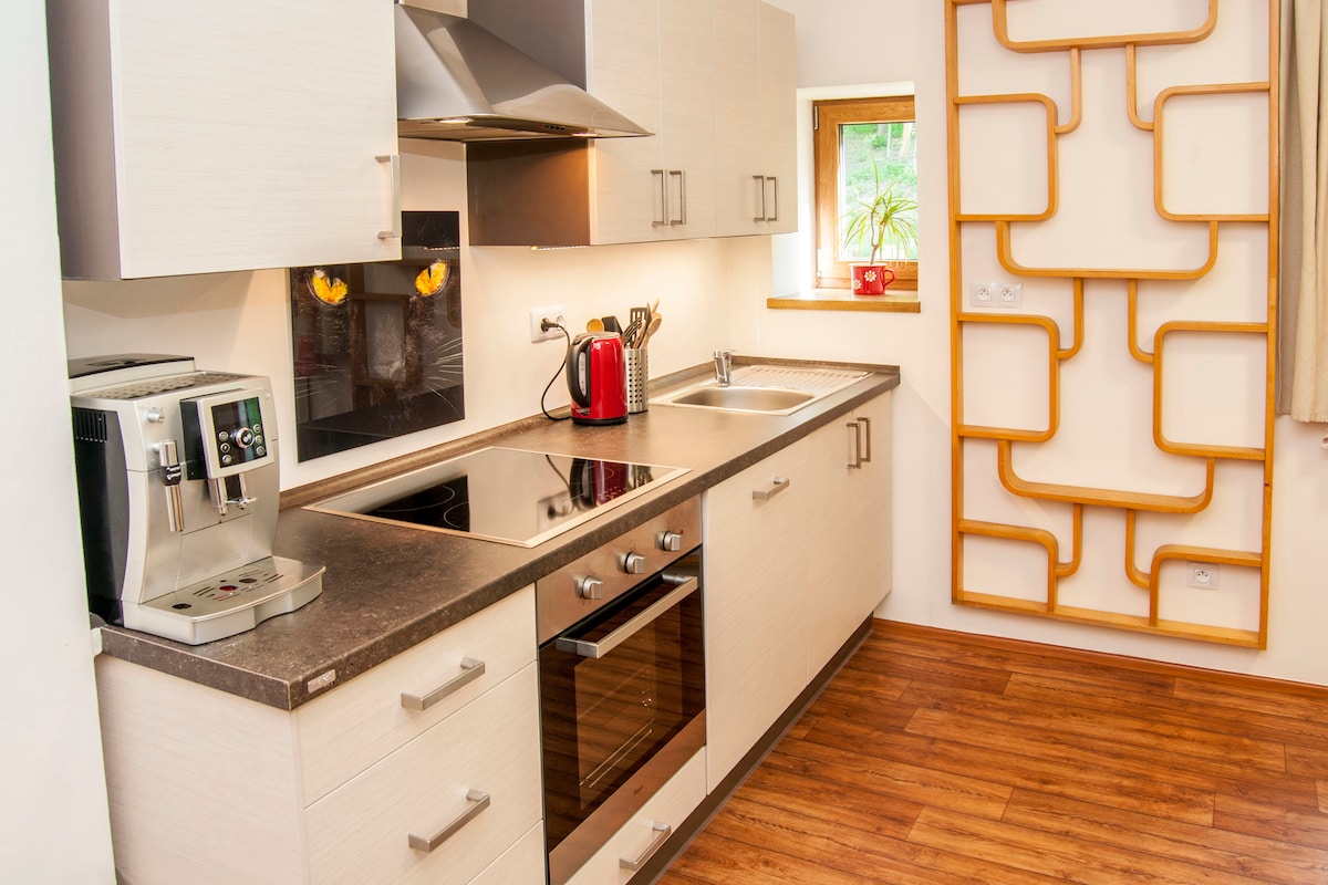 Stan je nedavno renoviran i nudi vam spavaću sobu sa dva kreveta, dnevni boravak sa opremljenom čajnom kuhinjom i kaučem na razvlačenje. Boravak je moguć za 2 - 4 osobe. Stan se može koristiti tokom cijele godine za rekreaciju ili manje radne izlaze. Stan se nalazi na trećem spratu kuće. U kući se nalazi i igralište i zasebna bašta sa ognjištem. Roštilj se takođe može iznajmiti po dogovoru. Veoma nam je drago što vam možemo poželjeti dobrodošlicu u naš stan!
