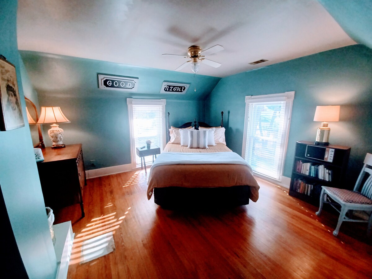 Doživite luksuzan i udoban boravak u našoj jedinstvenoj kući Hobit House, privatnom studio apartmanu u podrumu, dijelu istorijskog doma izgrađenog 1890. godine. Nalazi se samo nekoliko koraka od istorijskog trga slobode u centru grada, do kojeg se može doći pješke do koledža Vilijam Džuel i svega 20-25 minuta vožnje do centra Kanzas Sitija. Objekat nudi savršen spoj istorijskog šarma i moderne udobnosti. Iako je prikladnije za goste mlađe od 188 cm, ovo očaravajuće utočište pruža prepoznatljiv i nezaboravan doživljaj.