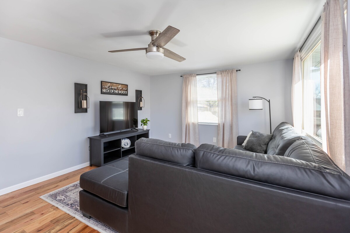 Opustite se u ovom skoro rajskom skrovištu. Ovo neodoljivo potkrovlje s tematikom medvjeda pruža vam seosko okruženje koje tražite i praktičnost koja vam je potrebna. Nalazi se na samo 5 minuta od centra Čarlstona i aerodroma Jeger. Uživajte u miru i tišini prirode ili uskočite u centar grada i uživajte u mnoštvu prodavnica i restorana. Obiđite Kapitol Zapadne Virdžinije na vrhu sa svojom predivnom zlatnom kupolom ili zaronite u brojne avanture WV-a. Posao ili zadovoljstvo, dopašće vam se Bear BNB