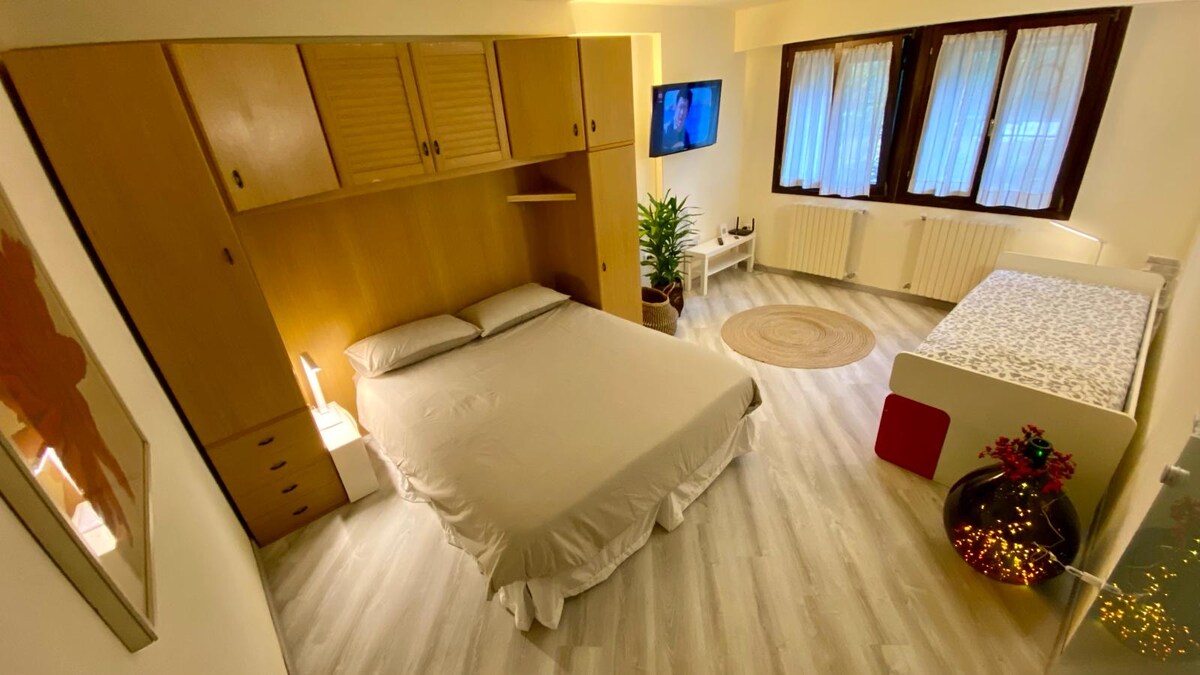 Na drugom spratu (na vrhu) vile iz ranih' 900 , 3 minuta hoda od kina Palazzo del Cinema, gdje se održava bijenalni filmski festival, i 10 minuta od javne plaže. Nezavisni prostor je podeljen na tri sobe. Jedna velika soba sa bračnim krevetom, garderobom ,kaučem na razvlačenje i trpezarijskim stolom. Opremljena čajna kuhinja i kupatilo sa tušem. Autobus za 2 minuta. Za 10 minuta hoda stižete do terminala na kojem brodovi odlaze u Veneciju.
