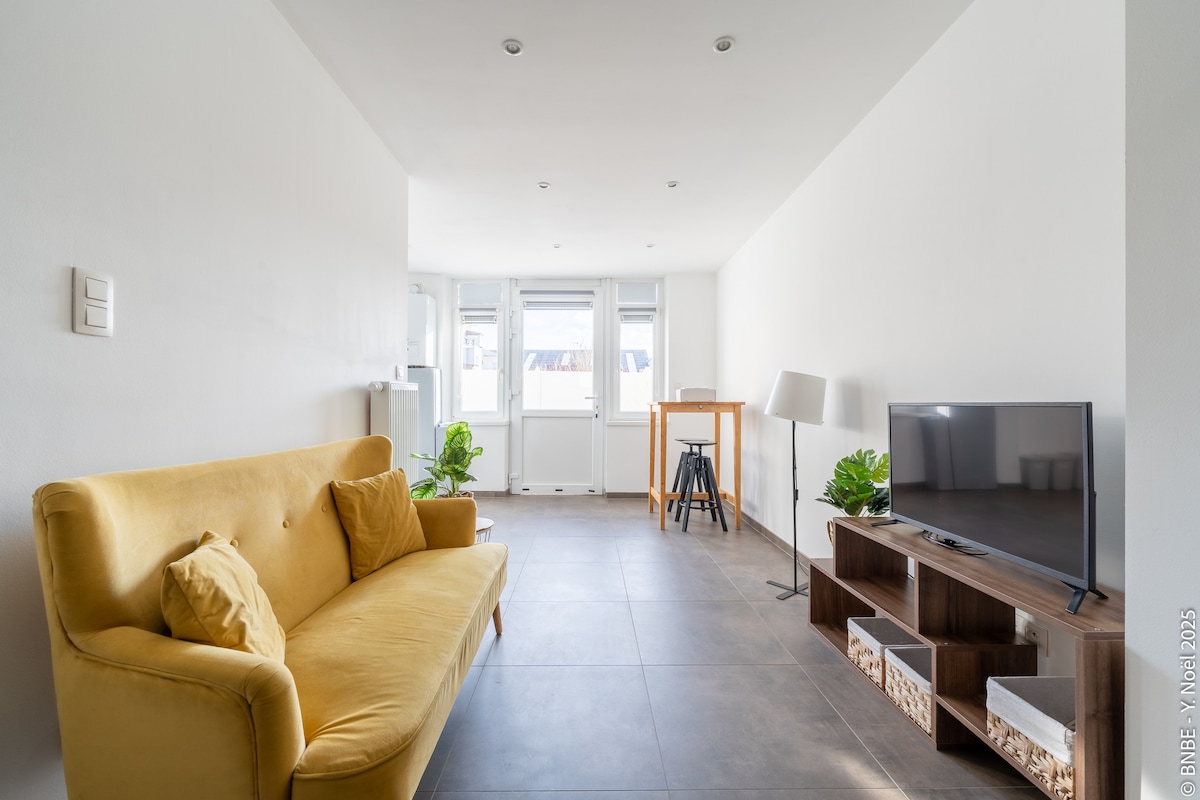 🌿Na 15 minuta hoda od centra grada, Outremeuse i Les Guillemins, otkrijte mali dio mira osmišljen za goste koji traže udobnost bez razbijanja banke ✨ 🧘♀️ Boemska, prijatna i umirujuća atmosfera 🛏️ Bračni krevet + kauč na razvlačenje sa pravim dušekom 🖥️ Lounge with 50"TV 🚿 Moderna tuš kabina u ravnini poda Imate i pristup zajedničkim prostorijama, uključujući potpuno opremljenu kuhinju i baštu — mješavina prelijepog privatnog prostora i duha hostela, za pametne goste 💸
