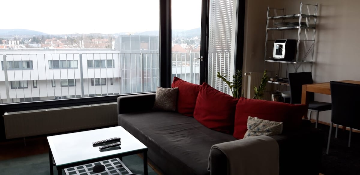 Dobro došli u moj divni, super povezani, svijetli jednosobni stan sa velikom, privatnom terasom! Stan je direktno povezan sa centrom grada (16 min) i glavnom željezničkom stanicom (9 min). Od željezničke stanice i centra grada postoji direktan pristup aerodromu (16 minuta sa MAČKOM). Direktna veza sa Belvedere, Hauptbahnhof, Wien Mitte, Rennweg, Prater, ovaj stan je takođe nedaleko od jedne od najposjećenijih turističkih atrakcija u Beču, poznatog Šenbruna.