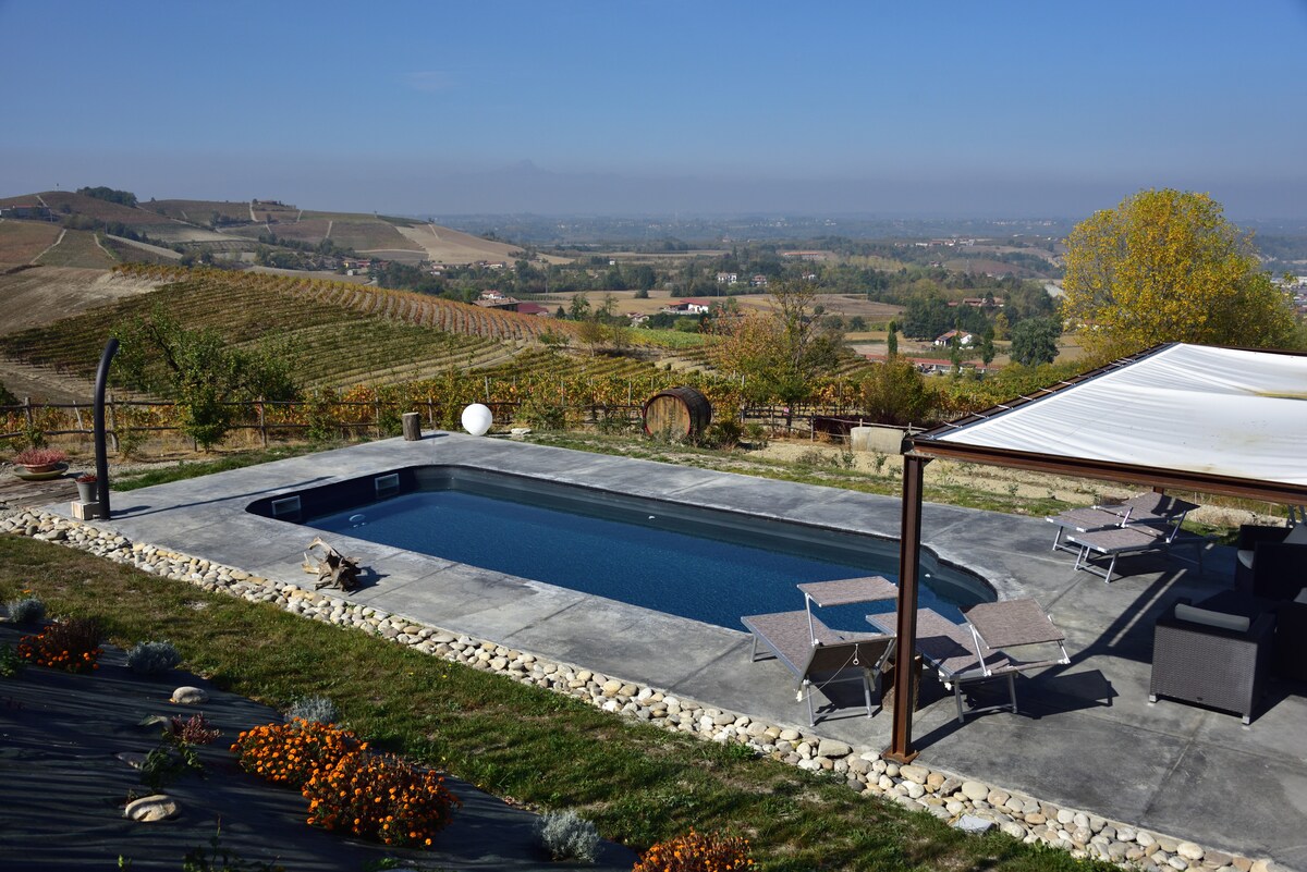 Privatna dizajnerska kuća s panoramskim bazenom i pogledom na brda Langhe, koja su pod zaštitom UNESCO-a, koji oduzima dah. Uživajte u zalasku sunca iz đakuzija i opustite se u svojoj privatnoj sauni, u potpunoj privatnosti i tišini. Nalazi se u srcu područja poznatog po vinima barolo i barbaresko, u svjetski poznatom području Albe u kojem se uzgaja bijeli tartuf. Savršeno za profinjen odmor uz prirodu, gastronomiju i udobnost.