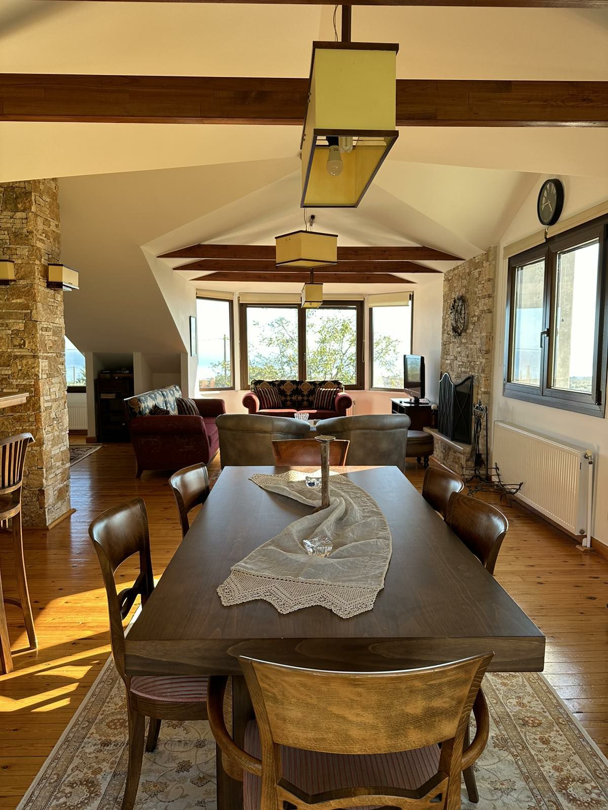 Pobjegnite u našu prelijepu vilu na selu s prekrasnim panoramskim pogledom na planinu Olimp i Egejsko more. Okružen bujnim uređenim mediteranskim vrtovima, nudi potpunu privatnost. Ukusno namješten smještaj ima 4 klimatizovane spavaće sobe, dnevnu sobu i 3 spoljne trpezarije, savršene za opuštanje, okupljanja ili joga odmarališta. Prikladno za porodice sa igralištem, dizajnirano je s ljubavlju, održivošću i pažnjom posvećenom detaljima - idealno za stvaranje nezaboravnih uspomena.