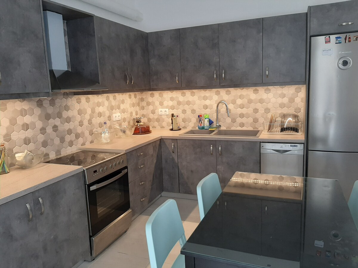 A 50m² penthouse apartment (bedroom, living room, bathroom & kitchenette) roof-garden of 150m²- wonderful view of Palamidi castle & central park. Between new & old part of town. Easy parking. Lift. Sights, shops, bars, restaurants, banks & beach of Arvanitia, within walking distance.