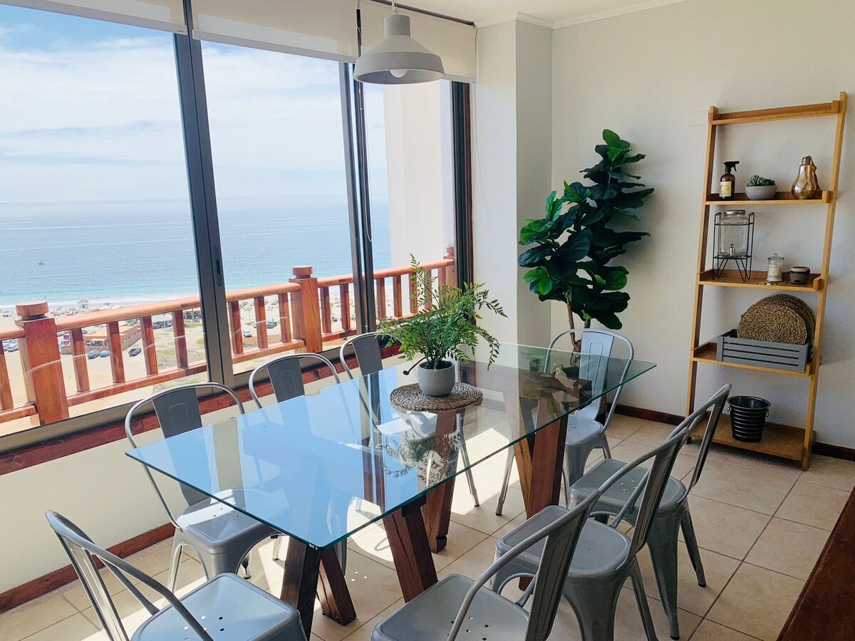 Espectacular departamento en primera linea en Puerto Velero - Tongoy, para 6 personas, la mejor vista, cerca de playa a través de sendero, escalera o funicular, que baja hacia ella . También a metros de sendero a piscinas de mar y agua dulce, marina y dos magnificos restaurantes; siempre encontrarán uno abierto! Lugar cuenta con: cajero automático, seguridad, supermercado en temporada, peluquería, spa, tiendas, Gim, sector Pimientos para asados , cancha de tenis, fútbol , paddle.
