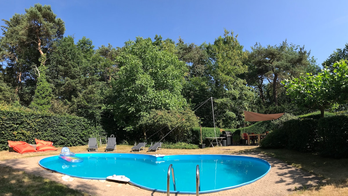 Samostalna kuća za odmor na dva nivoa sa 4 kreveta, kuhinjom, toaletom, tušem, saunom, šumskim vrtom i bazenom. Kuhinja je opremljena pločom za kuvanje, Nespresso aparatom, tiganjima, posuđem, priborom za jelo, mikrotalasnom pećnicom i frižiderom. Kuća se nalazi u šumovitom području Sterksela, u blizini pustare i mnogih zelenih biciklističkih staza. Na parceli u šumi imate pristup otvorenom bazenu (bez grejanja, otvoren leti), stolu, travnjaku, košarkaškom terenu, kanuima, ognjištu, trampolini i roštilju.