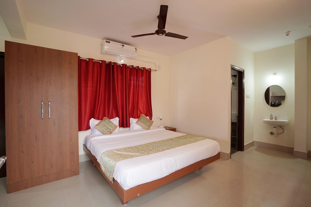 Dobro došli u Boho Sunset, potpuno novi studio apartman u boho stilu u Electronic Cityju, faza 1, samo 2 minuta od ulice Neeladri. Ovaj utočište u toplim narandžastim tonovima ima jedinstven krevet u stilu baldahina sa estetskim zavesama, udoban prostor za sedenje pored prozora sa jastucima savršenim za dva gosta, brz Wi-Fi, potpuno opremljenu kuhinju, 43-inčni Google TV, lift, rezervno napajanje, mašinu za pranje veša. Savršeno za parove, samostalne putnike i poslovne goste koji traže miran, elegantan smještaj u Bangaloru u blizini tehnoloških parkova i kancelarija.