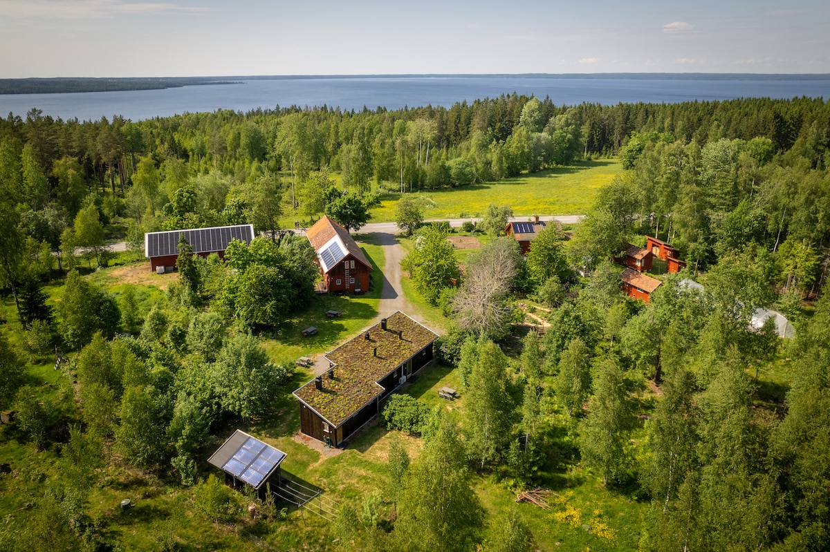 Privatni ulaz u zasebnoj zgradi sa krevetom na sprat, sofom i odvojenim kupatilom. Pješice do plivanja, u blizini pješačkih staza, prirodnih rezervata i prodavnica na farmi. • Može da spava 4 osobe • Besplatan parking • Bazen (bez grejanja i dostupan od juna do avgusta) • Mogućnost spremanja osnovnih jela sa plinskim roštiljem, mikrotalasnom rernom i 2 prenosna šporeta • Dostupna je dobro opremljena kućna teretana • Prikladno za djecu s igračkama i igralištem • 15 minuta do slikovitog Askersunda, 30 minuta do Orebra
