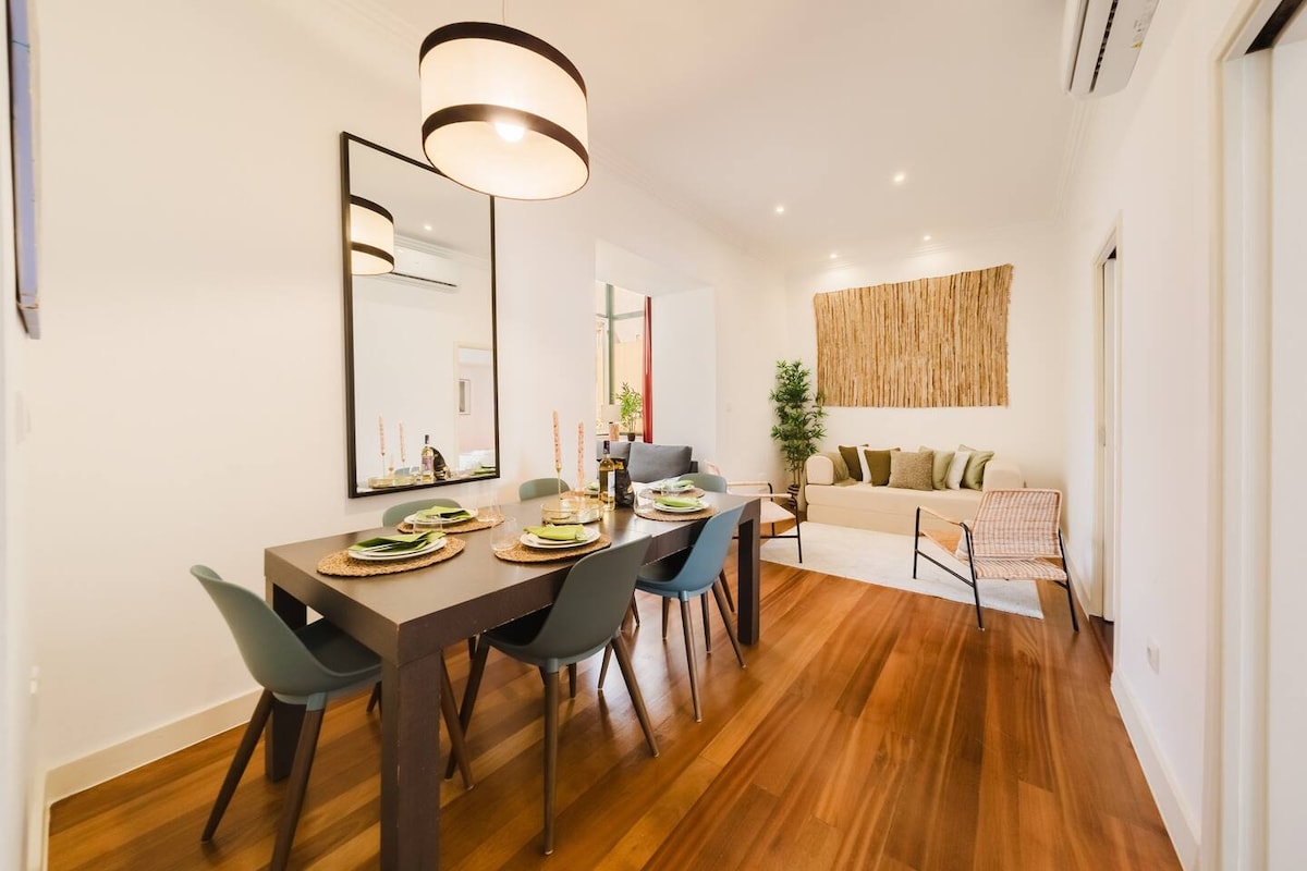 Otkrijte mirno utočište! Smještaj ima minimalističku dizajnersku estetiku, unutrašnjost bijelog i drveta, kontrastne teksture i obrasce, prskanje boja, dnevni boravak otvorenog tipa i zajednički pristup bazenu. Idealno smešten u istorijskom centru grada sa veoma lakim pristupom javnom prevozu: metrou, autobusu, tramvaju, vozu... Wi-Fi (Fiber/5G): 75 Mbps... Smeštaj se sastoji od velikog dnevnog boravka sa potpuno opremljenom kuhinjom sa pločom za kuvanje, električnom rernom/mikrotalasnom rernom, mašinom za pranje i sušenje veša, mašinom za sudove, frižiderom/zamrzivačem, aparatom za kafu, čajnikom, tosterom... 2 trpezarije: za šankom ili za stolom za 4 osobe. Dnevni boravak sa TV-om i kaučem na razvlačenje 120x200. Spavaća soba ima veoma udoban krevet 140x195, garderobu i radni sto. Kupatilo sa tušem. TV sa međunarodnim kanalima, brzi Wi-Fi i klima uređaj. Stan je osiguran sigurnosnim vratima i videofonom. Praktičnost : Personalizovana isporuka ključeva pri dolasku. Dolasci su od 15:00 do 20:00. Ključeve je moguće dobiti ranije u zavisnosti od raspoloživosti. Između 20:00 i 23:00, dodatni troškovi: 25 € Dolasci nakon 23:00 imaju dodatni trošak od 40 EUR. Polazak je pre 11h. Sedmično čišćenje (opcija): 50 € Dodaci koje treba platiti na licu mesta u gotovini. Bazen i privatna bašta u kondominijumu. Kozmopolitska četvrt u srcu Lisabona, kolijevka fado muzike, okrug Murarija nudi očaravajuću atmosferu, sa svojim uskim i strmim ulicama, starim tipičnim zgradama sa fasadama Azulejosa i autentičnim restoranima.