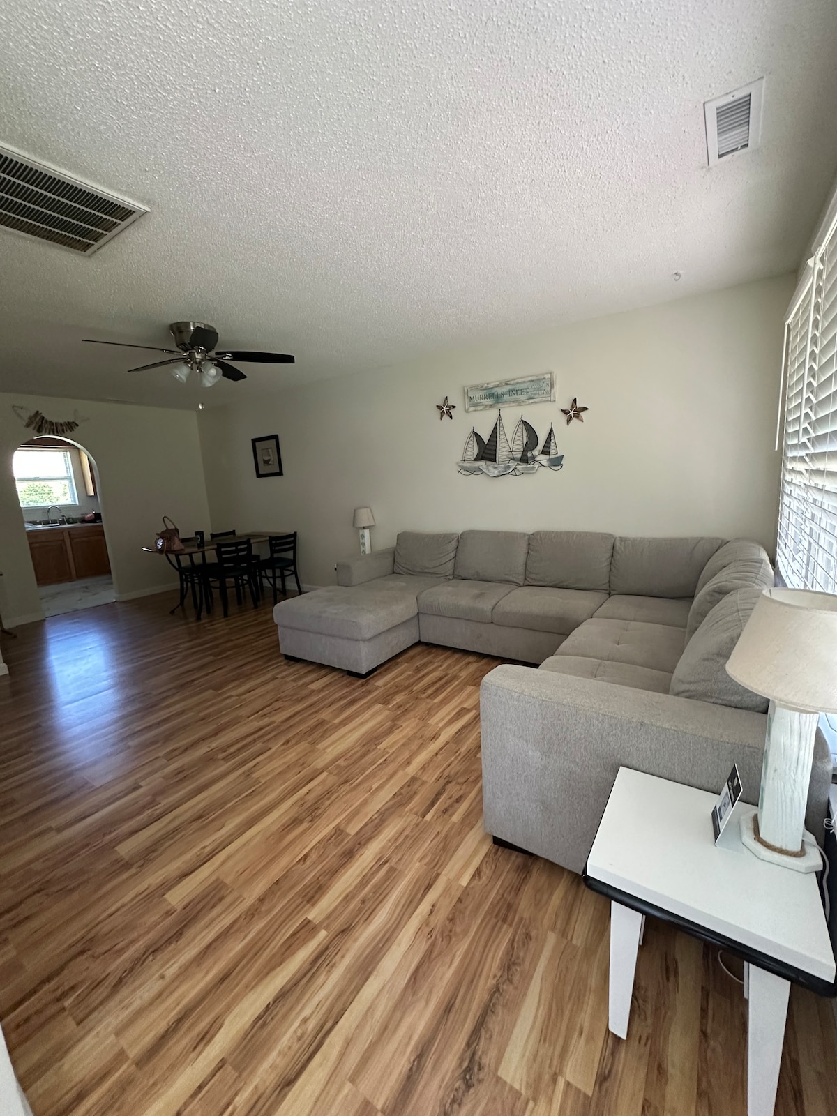 Nalazimo se na obali, takođe i prirodnom delu Murrells Inleta. Imamo prelepe izlaze sunca i pogled na zaliv iz našeg dvorišta i dvorišta. Biciklistička staza Waccamaw Neck, koja je deo Istočne obale Grinveja, vodi ispred našeg doma. (Ponesite bicikl) Državni park Hantington Bič i Brukgrin Gardens 1 milju južno od nas. Šetnja močvarom je udaljena 2 milje od severa. Grahams Landing Restaurant is one lot over from us, within walk away. Southern Hops je prekoputa.