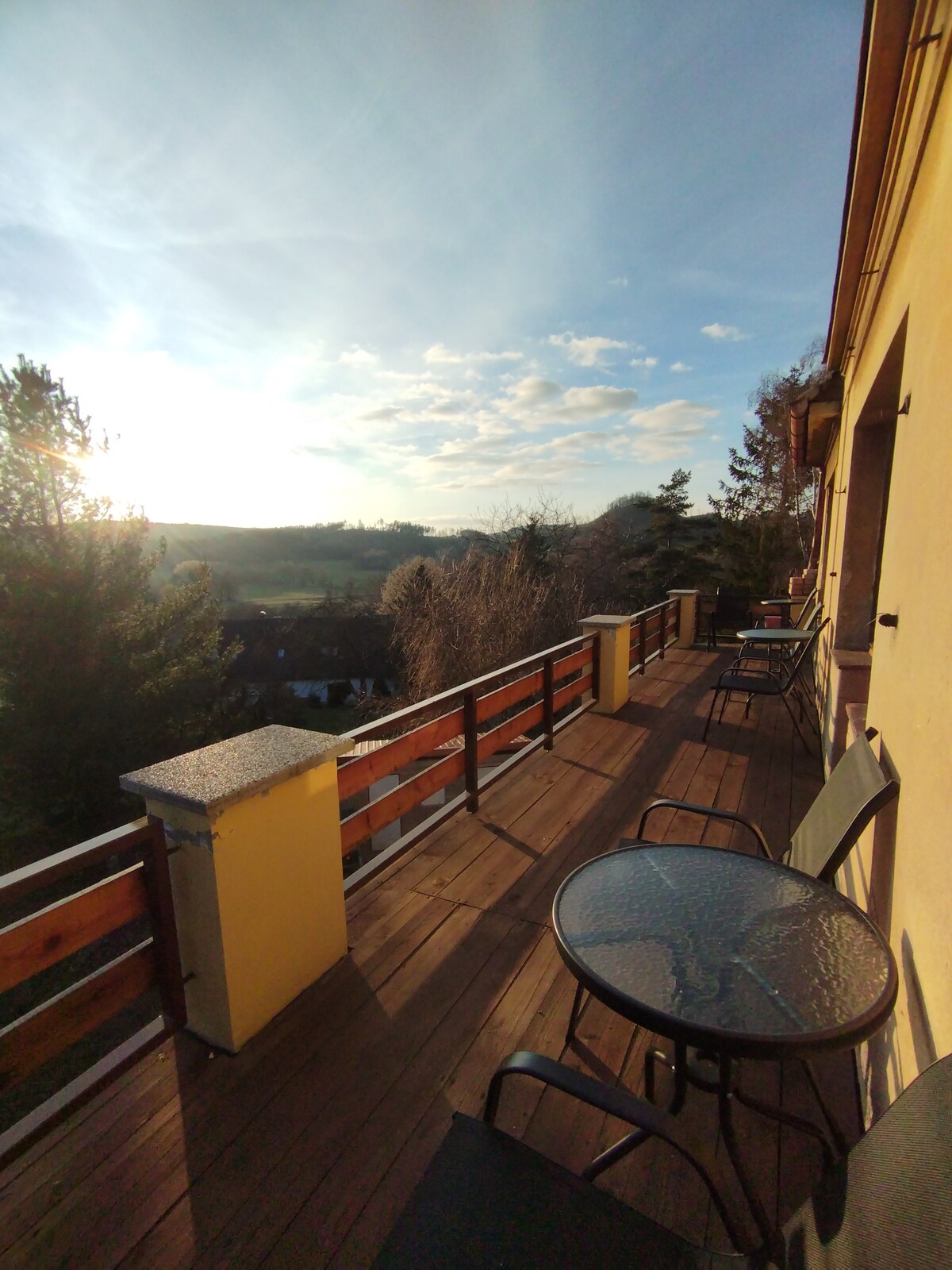 Pogled na sever Boemska brda, uronjen u najautentičniji češki krajolik. Nekoliko koraka od šume, naši gosti mogu da uživaju u privatnom SPA CENTRU i velnesu. Sa đakuzija mogu da uživaju u pogledu na privatnu baštu dok pijuckaju vina koja sami proizvodimo. Takođe nudimo uslugu doručka (švedski sto) koja će biti rezervisana najmanje 2 dana unapred ili na zahtev (cena nije uključena u cenu smeštaja). Doručak se nalazi 300 metara od seoske kuće.