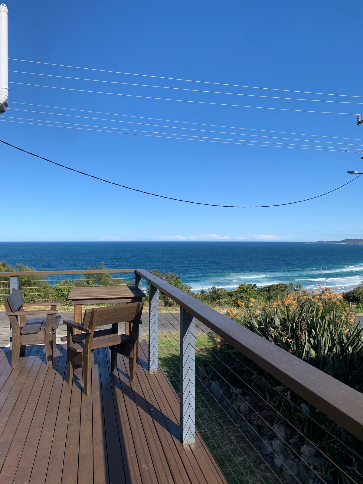 Očaravajućih 180 pogleda na planine i okean. Vrlo udobna kuća na plaži s 3 spavaće sobe, suncem obasjanom suncem i velikom terasom okrenutom prema sjeverozapadu s grijanim bazenom. Potpuno opremljena kuhinja sa svime što vam je potrebno. Drveni kamin sa drvetom. Sva posteljina i peškiri su uključeni. Još jedna velika tiha terasa na tajnom zadatku sa zadnje strane okružena prelijepim baštama i velikim ograđenim dvorištem. Smješten na brdu s pogledom na Crescent Head Ova kuća je savršena ljeti ili zimi.