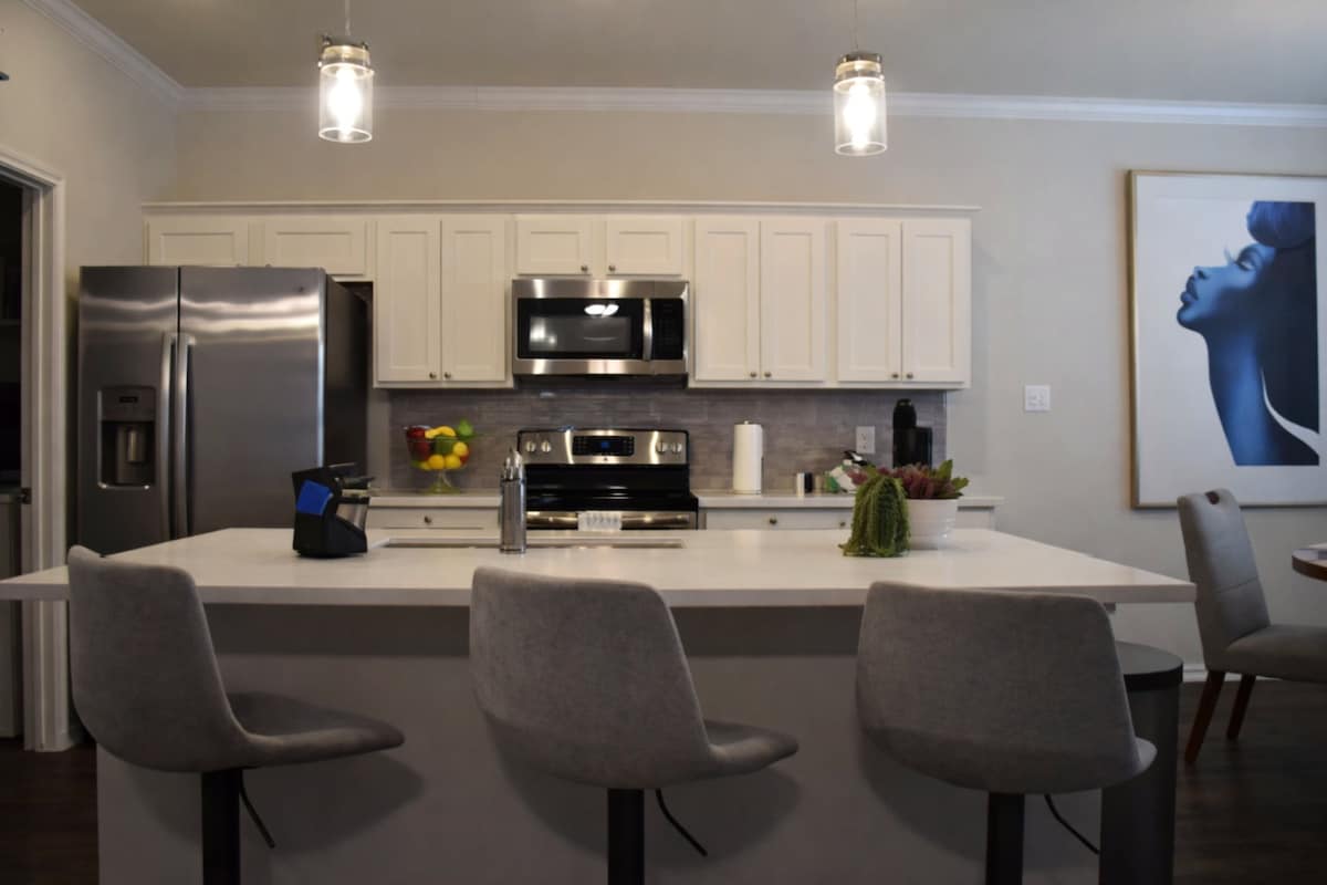 Opustite se u ovom prelepo uređenom dupleksu sa 3 spavaće sobe i 2 kupatila, udaljenom manje od 10 minuta od Bejlor Skot i Vajt. Uživajte u mirnom okruženju, privatnom parkingu, brzom Starlink Wi-Fi mrežom, vešernici u sklopu jedinice i potpuno opremljenoj kuhinji. Savršeno za poslovne ljude, porodice ili sve koji traže čist, udoban i praktičan smještaj u Templu. Blizu parkova i sadržaja. Dodatna bezbjednost uz Ring kameru.