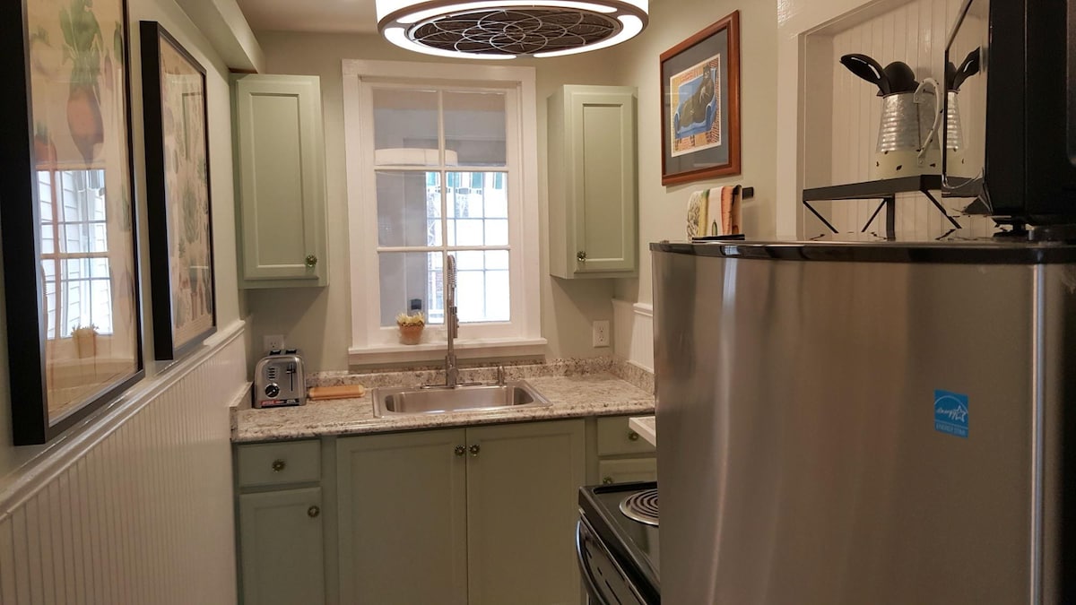 Naša romantična baštenska seoska kuća je šarmantna, udobna i udobna. To je naša najmanja seoska kuća, ali je cijena i dizajnirana sa svime što je potrebno za opuštajući odmor: privatni balkon s pogledom na baštu, luksuzni bračni krevet, dvostruka hidromasažna kada (ručni tuš), dobro opremljena čajna kuhinja, ulaz u baštu i samostalna prijava/odjava. Parkirate na korak od vas, a i vaš kućni ljubimac je dobrodošao! Prošetajte 4 ulice do Saut Mejna i uživajte u lokalnim restoranima, prodavnicama i zabavnim sadržajima.