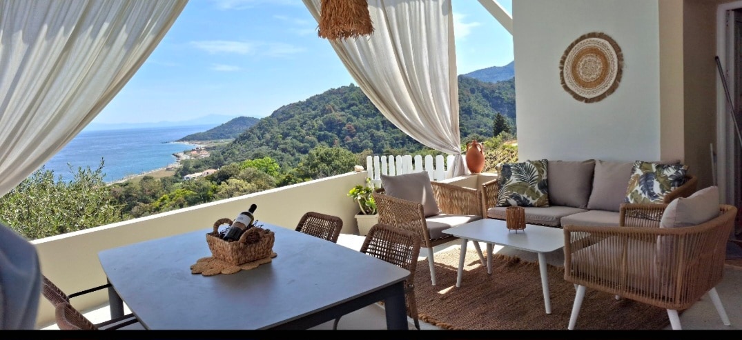 Dve novoizgrađene maisonete na mirnoj lokaciji sa neverovatnim pogledom na more i slikoviti Kokkari (udaljen 1000 m). Idealno za parove i porodice i one koji žele opuštajući odmor. Takođe je izuzetan za sportske aktivnosti (biciklizam, planinarenje, vodeni sportovi, jedrenje na dasci) u blizini u Kokkariju. Detaljno uređen stan: dve spavaće sobe, potpuno opremljena kuhinja, 2 kupatila, TV, Wi-Fi, privatne sezonice, balkoni sa neverovatnim pogledom, klima-uređaj, mreže za komarce na svakom prozoru.