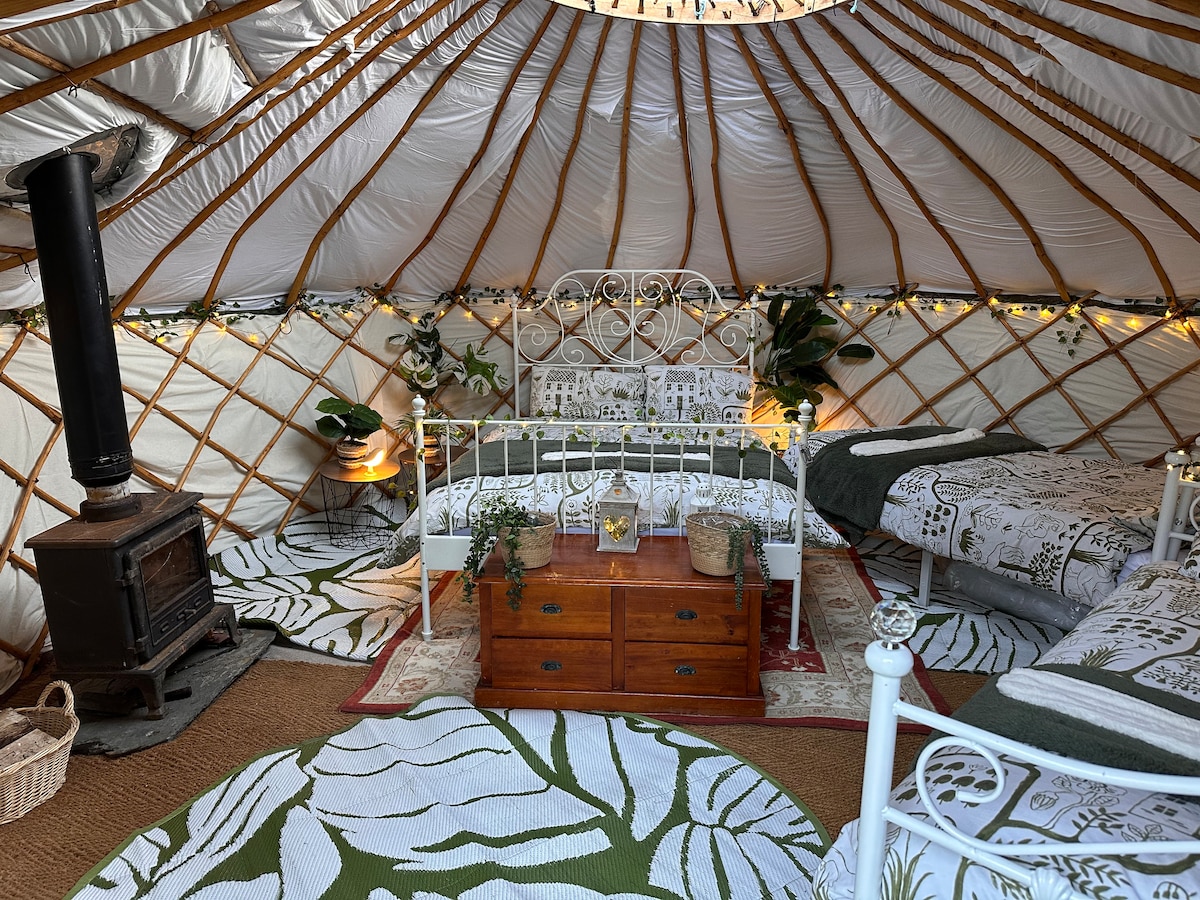 Off Grid unique Panoramic Dome, sleeping 2 adults.Double bed, log burner & amazing views. As you enter your quirky dome, you’ll be tempted to dive into the double bed and devour those views! You’ll also find comfy seating – the ideal spot for a cup of tea .Simply yet effectively furnished, the space reinforces the sense that this is a sanctuary. Its remote location means that the Dome is off grid. Greener Camping Club Members, see other details below.