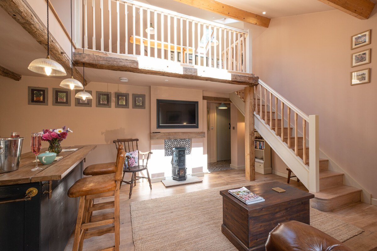 Samostalni luksuzni aneks za jednog ili dva gosta. Miran i udoban prostor za opuštanje. Završen na izuzetno visok standard, sa visokim plafonima, hrastovim gredama i stubovima. Potpuno izolovan podnim grijanjem, ispod kamena. Kuhinja je potpuno opremljena sa rernom i pločom za kuvanje, mikrotalasnom rernom, fritezom, frižiderom, mašinom za pranje sudova, mašinom za pranje veša. Smješten na zapanjujućoj, mirnoj lokaciji na granici između Engleske i Velsa sa pogledom koji oduzima dah. Savršen način da doživite seoski život.